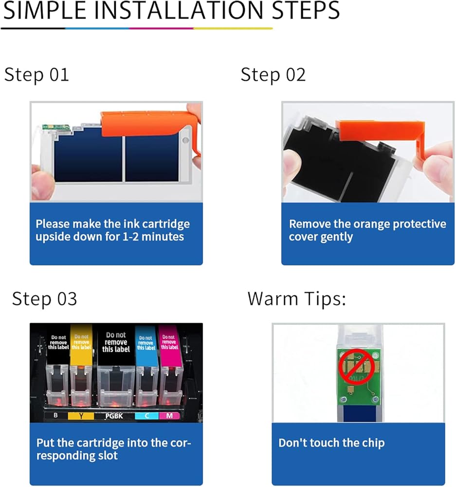 📄【 خراطيش PGI-250XL CLI-251XL متوافقة بنسبة 100% للطابعات. 】: مجهزة بشريحة ذكية تناسب تمامًا مثل خرطوشة OEM الجاهزة للاستخدام الفوري عند التثبيت. توافق عالي وفحص صارم للجودة ليمنحك الاطمئنان عند الاستخدام.