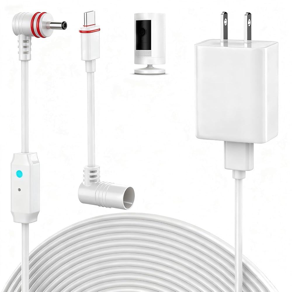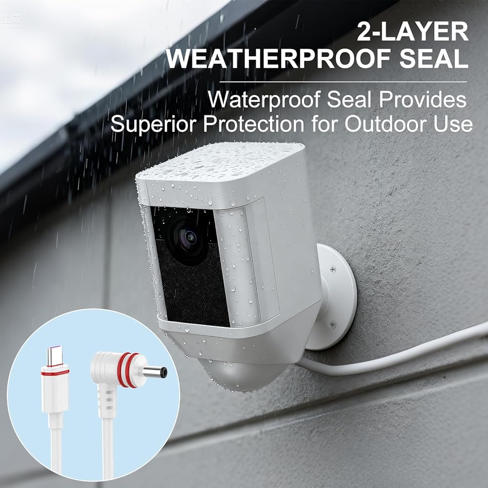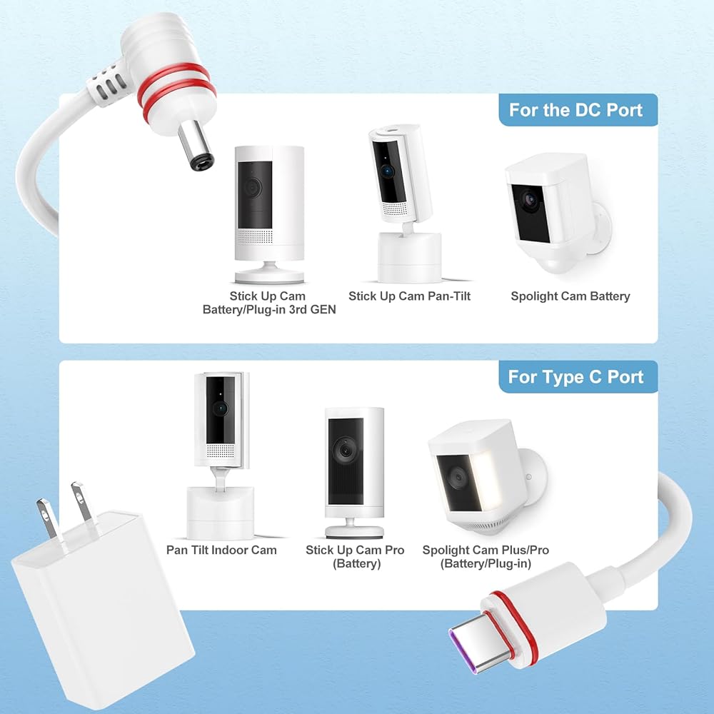 【Long Cable】With the 23ft cable, you can install your Ring camera anywhere and continuously charge your Ring Spotlight Cam Plus/Pro and Stick Up Cam Battery Camera without battery replacement.