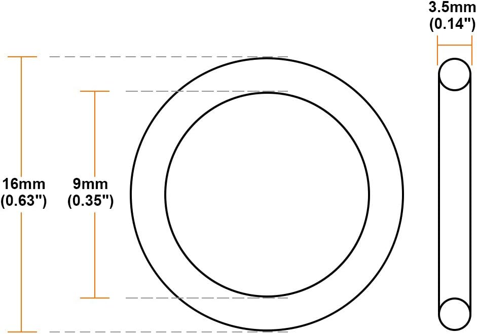 حلقات دائرية مطاطية من uxcell مقاس 16 مم OD 9 مم عرض 3.5 مم، حشية إغلاق FKM مترية، عبوة من 25 قطعة