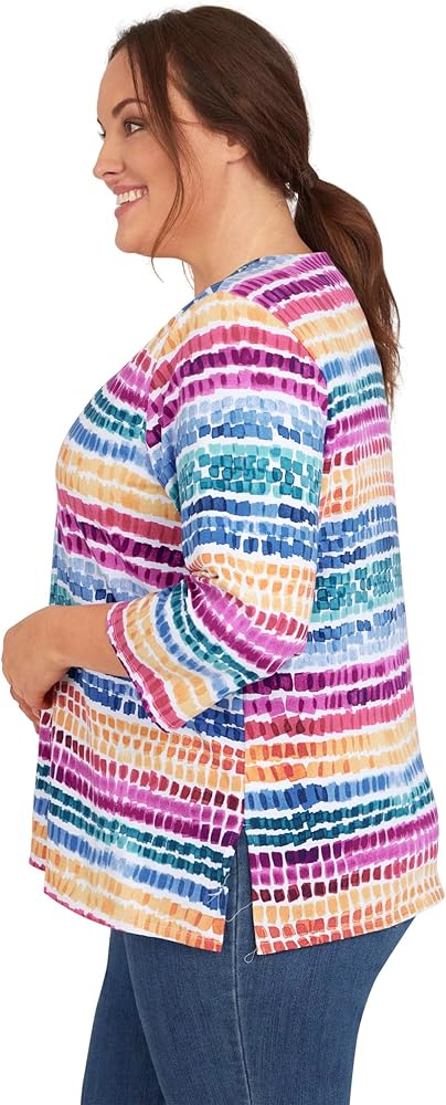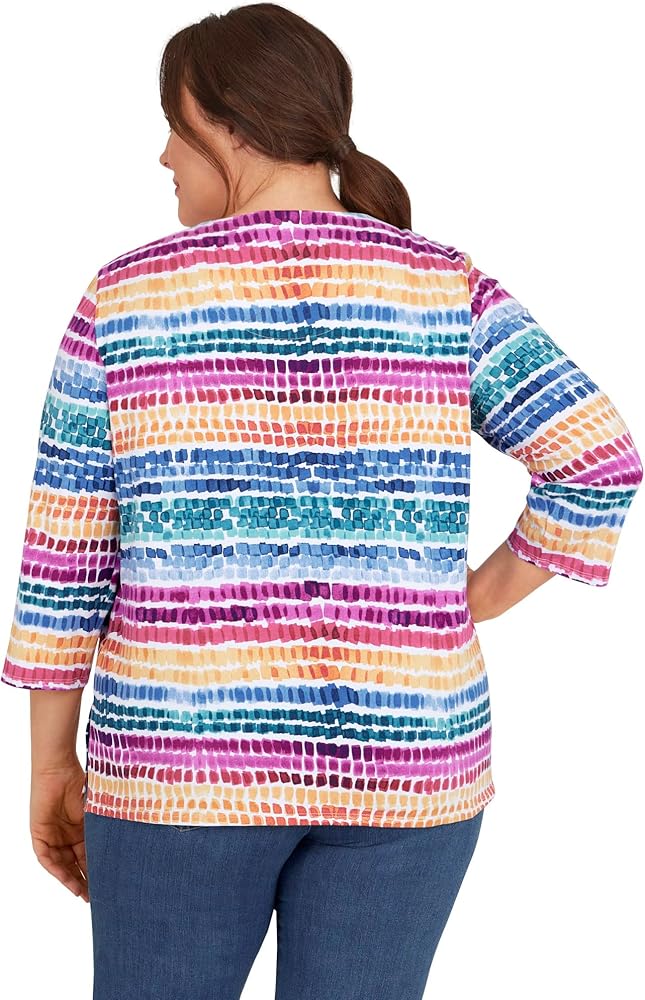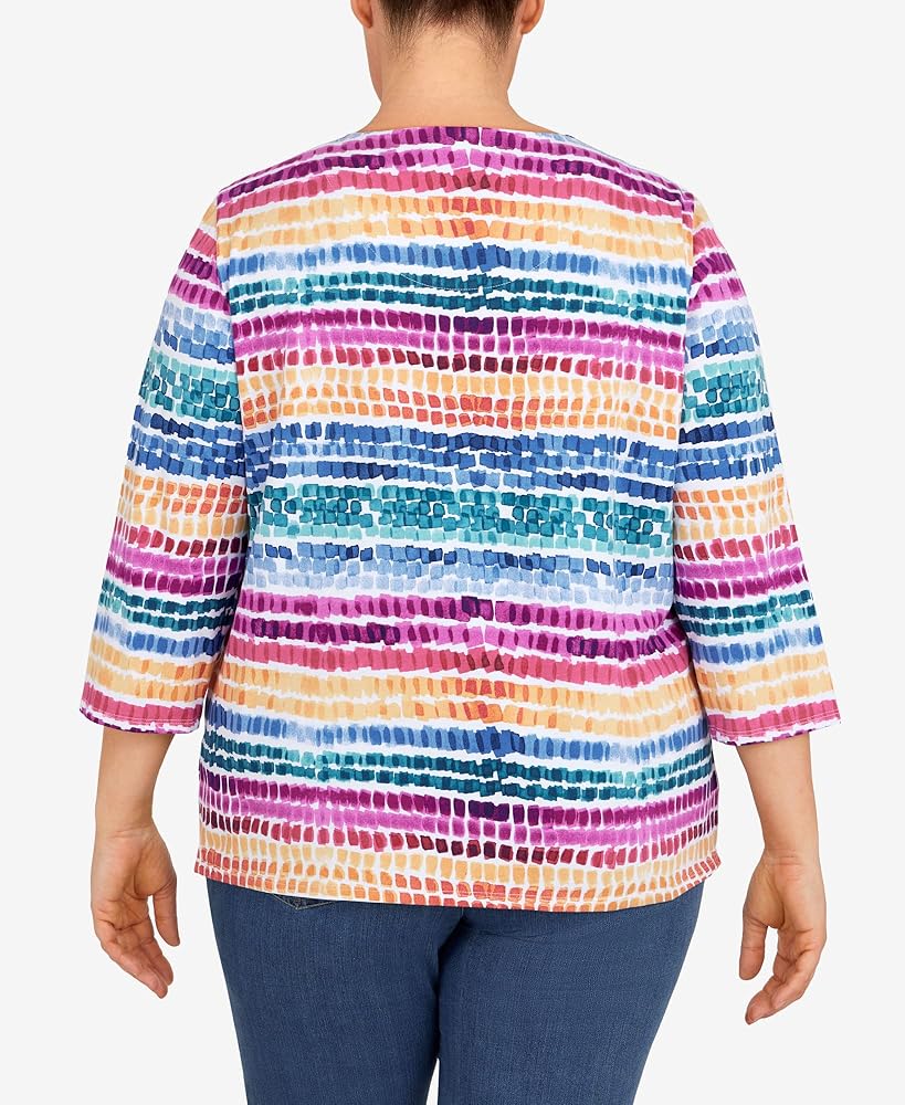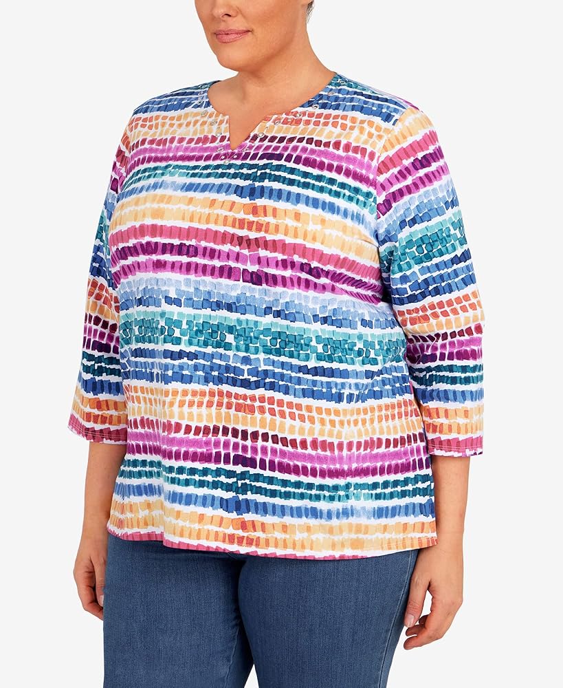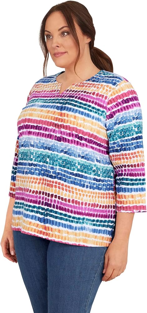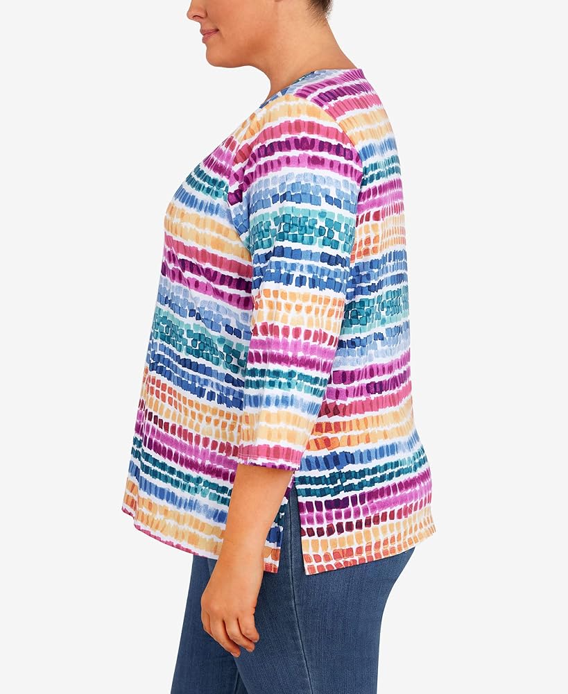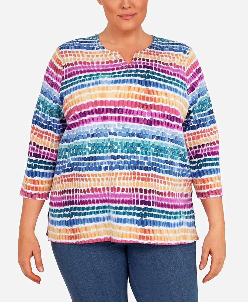 بلوزة نسائية من Alfred Dunner بمقاس كبير ورقبة منقطة بألوان قوس قزح