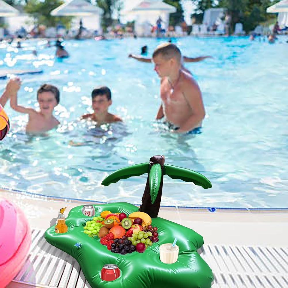[تصميم فريد] حامل مشروبات عائم قابل للنفخ لحمام السباحة مع 4 حاملات أكواب للمشروبات وزجاجات البيرة والعلب، لن ينقلب.. توجد أيضًا مساحة تخزين كبيرة في المنتصف لحفظ الطعام والبيرة..الحجم: 32 × 22 × 19 بوصة