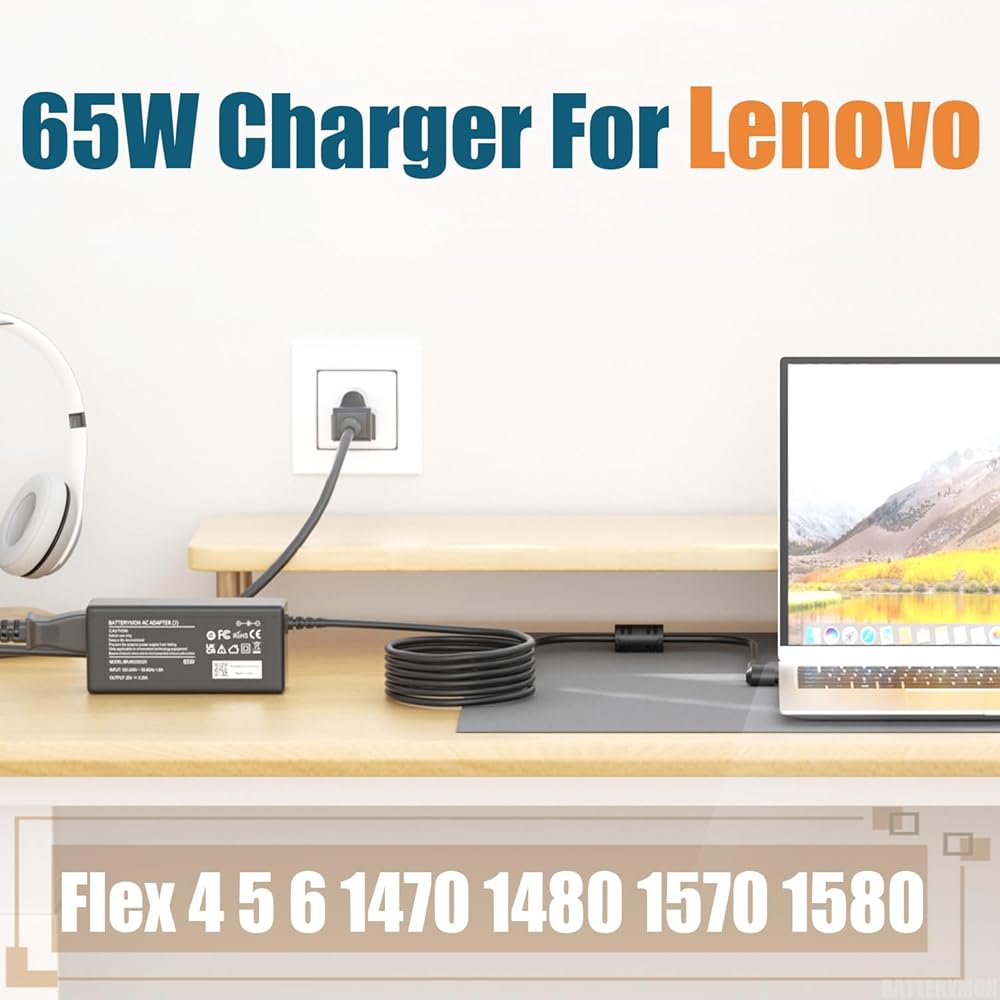 65W سلك الطاقة لـ Lenovo IdeaPad Flex 5 Charger ، Flex 4 5 6 1470 1480 1570 1580 4-1130 IdeaPad 3 S145 S150 S340 S740 710S 720S 320 330 Yoga 710 720 V14 V15 V17 Actop (20V 3.
