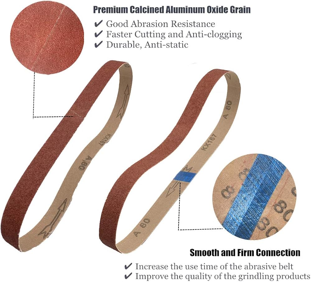✔ Precision engineered bi-directional tape joint, the sanding belts interface is firm and smooth, will not break. Excellent for use with both narrow and wide belts, they are Ideal for a wide range of belt-sanding applications.