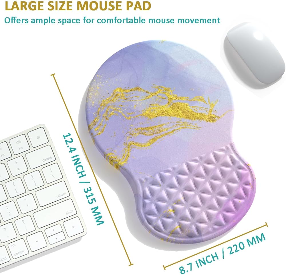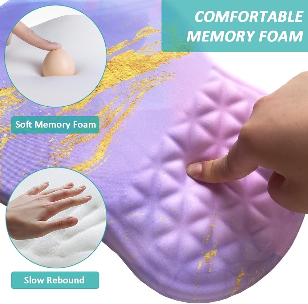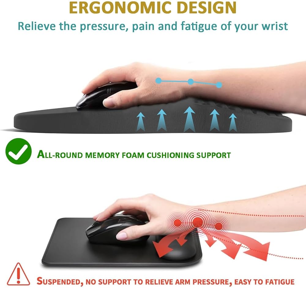 • 【تصميم مريح】تتميز لوحة الماوس مع دعم المعصم بمنحدر مريح ومفهوم تصميم نتوء التدليك الثلاثي لضمان ملاءمة مثالية مع معصمك. بالنسبة لأولئك الذين يواجهون الكمبيوتر لفترة طويلة، فهذا يساعد على تخفيف آلام المعصم والتعب، وتحسين متلازمة النفق الرسغي (CTS).