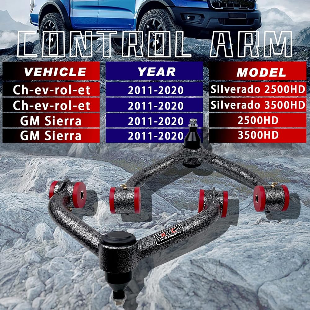 أذرع التحكم العلوية الأمامية لـ 2011-2020 Chevy Silverado 2500HD 3500HD GMC Sierra 2500HD 3500HD، مجموعات تعليق رفع 2-4 بوصة أذرع تحكم قابلة للتعديل مع وصلة كروية قطعتان