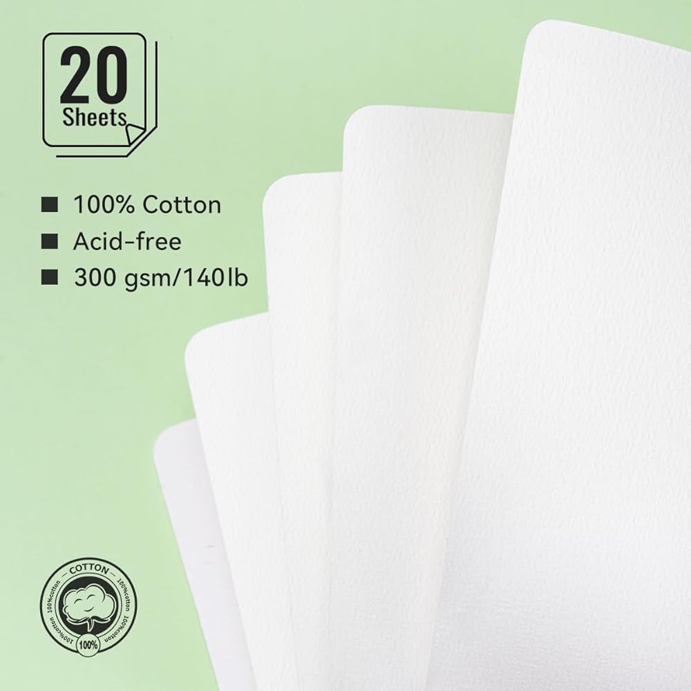 • ورق عالي الجودة: تتميز مجلة Lightwish Watercolor بورق قطني 100% عالي الجودة بوزن 300 جرامًا للمتر المربع مع نسيج مضغوط على البارد، مما يوفر سطحًا فاخرًا ومتينًا لإبداعات الألوان المائية الخاصة بك
