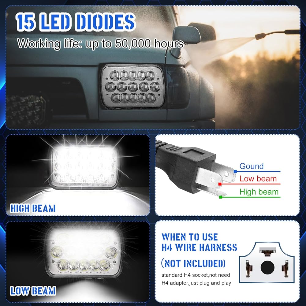 4 قطعة مستطيل LED المصابيح الأمامية H6054 5x7 7x6 Led المصابيح الأمامية كشافات مختومة شعاع Led كشافات للشاحنات فان اكسبرس سيارة