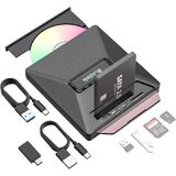 • محرك أقراص DVD خارجي USB3.0/UAB C محمول: محرك أقراص DVD خارجي مزود بمنافذ USB A + USB 3.0. يسمح تخزين الكابل المدمج بمزيد من التنظيم في تخزين المنتجات.