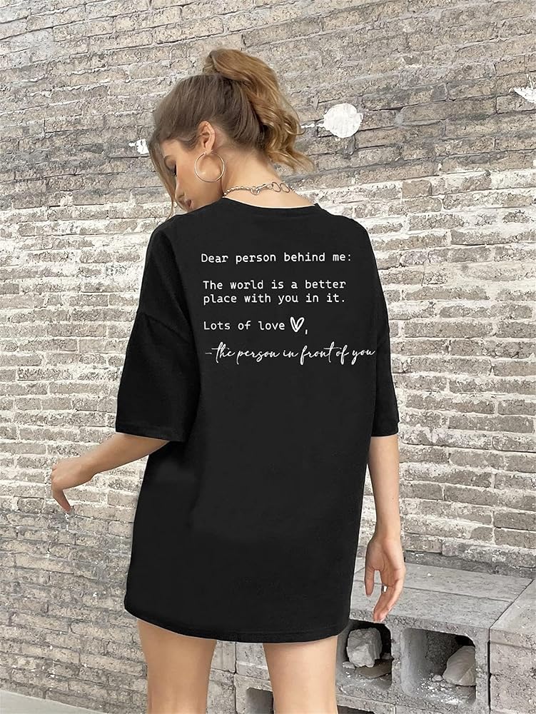 تصميم مثالي: تي شيرت مطبوع عليه حروف مقولات ملهمة، قميص نسائي صلب كبير الحجم. يعتبر قميص عزيزتي الشخص الذي ورائي هدية رائعة للفتيات المصابات بالتوحد، فهو يشجعهن ويمنحهن طاقة إيجابية.