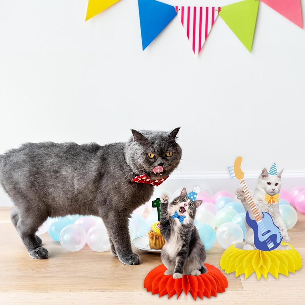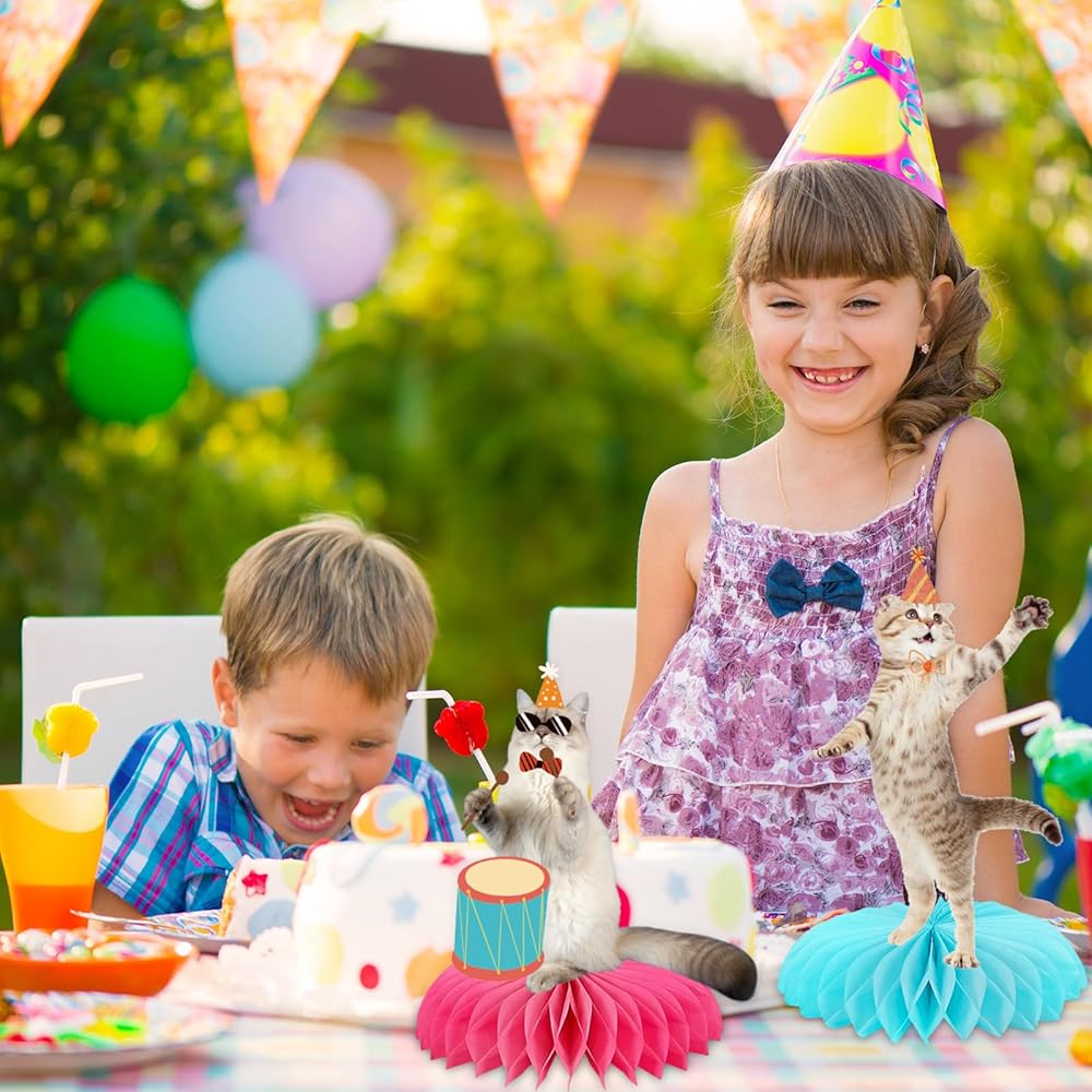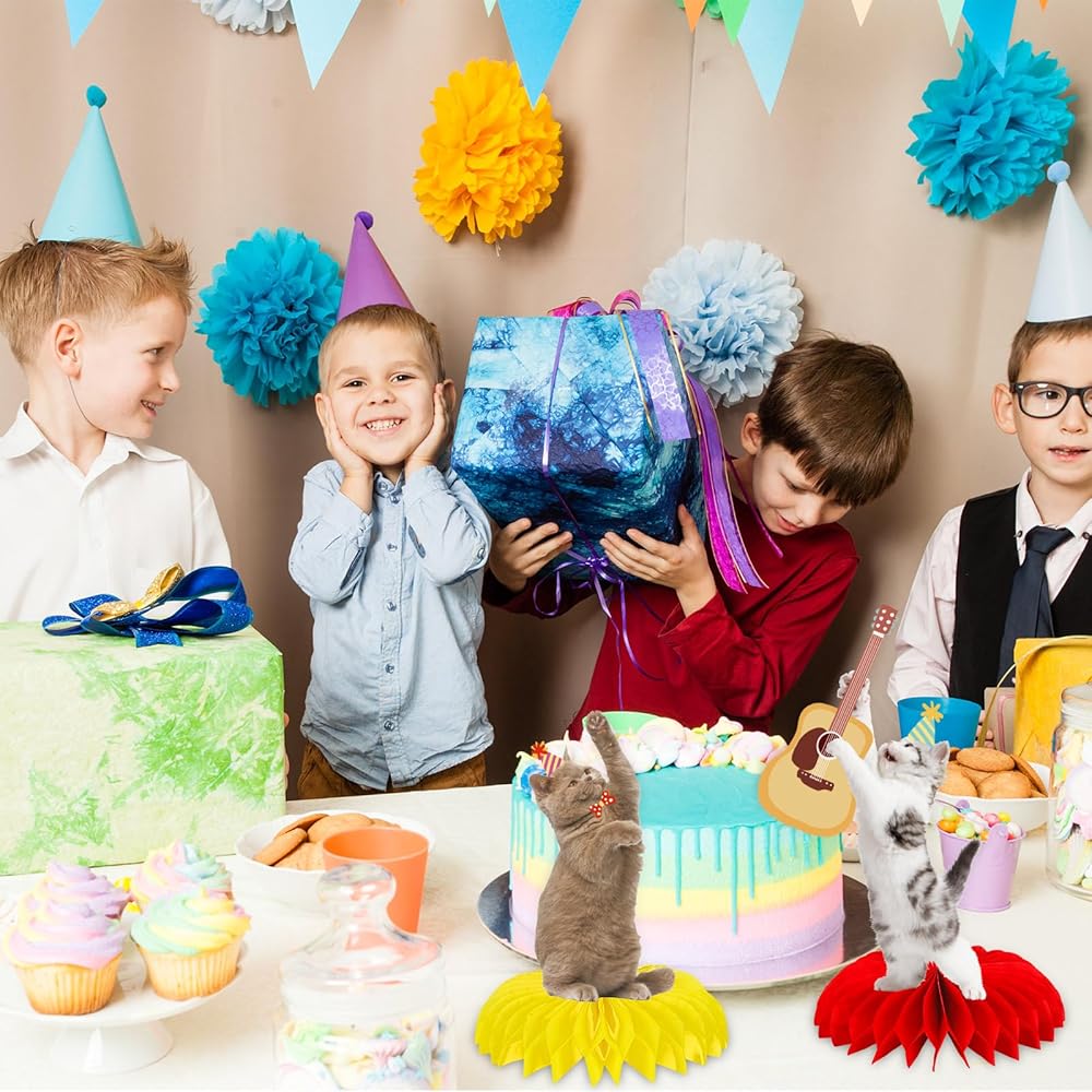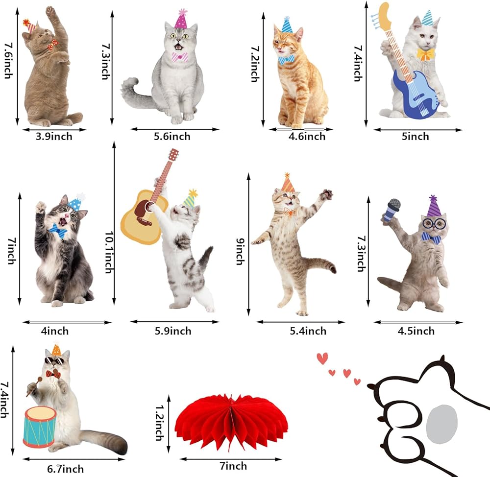 9pcs kitten honeycomb centerpieces are contained in the set, vivid and colorful design makes your party look more exquisite