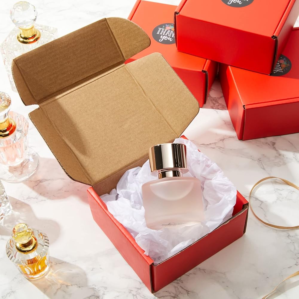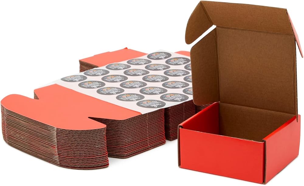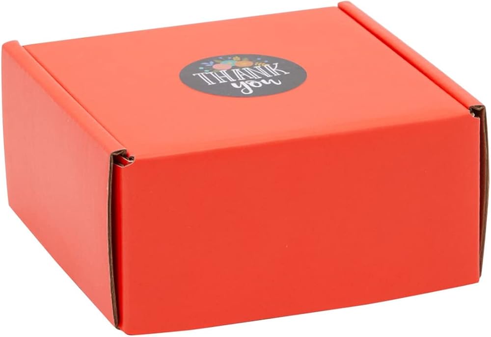 • What's Included: Includes 25 red corrugated boxes with thank you stickers for packaging