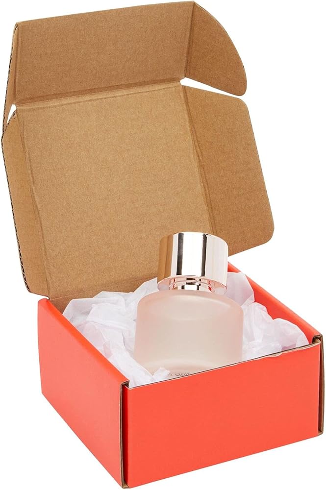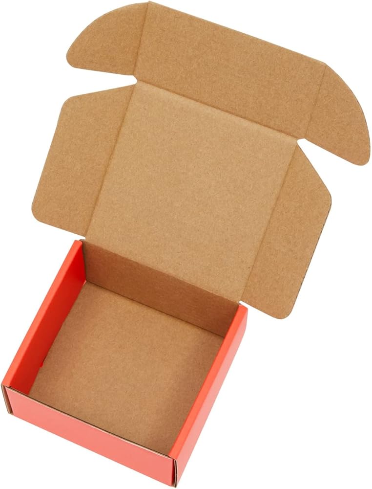 Use this set of 25 red corrugated cardboard boxes with thank you stickers for shipping and packaging clothing, pictures, art prints, and cosmetics to your customers. Each cardboard mailer measures 4 x 4 x 2 inches, the thick and rigid paper construction will ensure contents remain inside while in the mail. The red small shipping boxes can be customized with business logos, stickers, and stamps to help your small business packaging stand out from competitors!