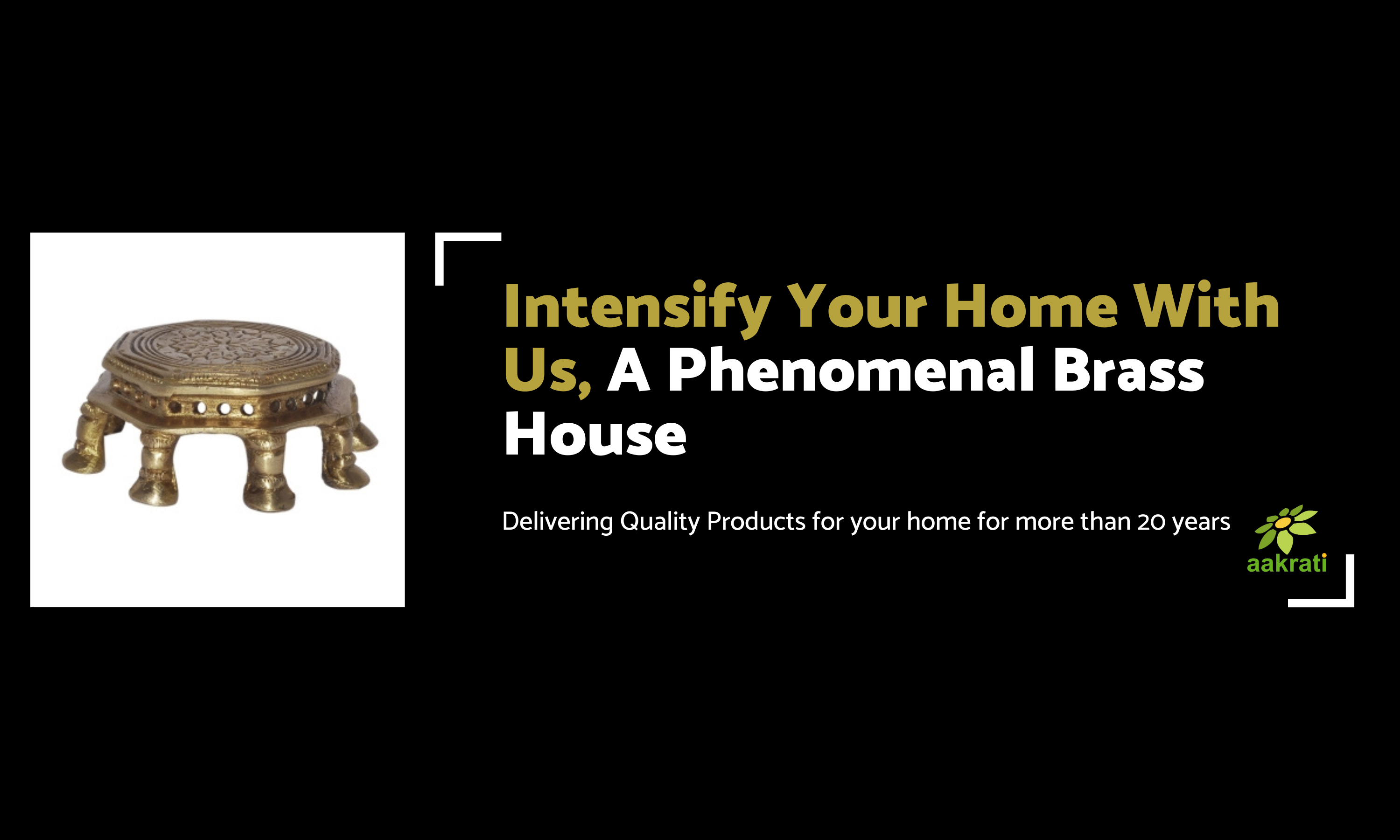 Aakrati Handicraft Brass Chowki للمعبد المنزلي - حامل صغير - أثاث معدني للطاولة لوضع أي عرض صغير - تمثال هدية فريد من نوعه مصنوع يدويًا من المعدن الهندي