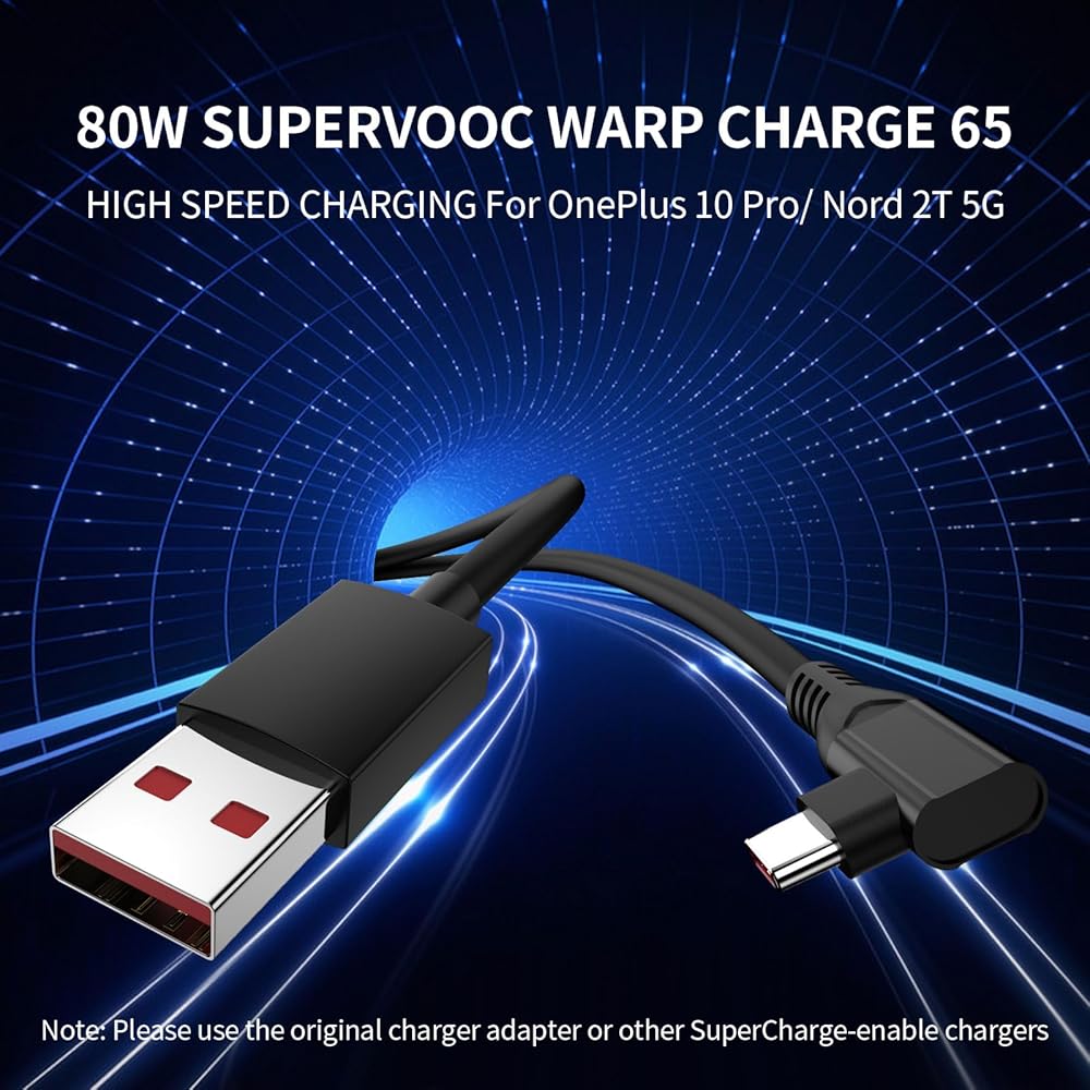 Jelanry لـ OnePlus SUPERVOOC 80W USB A إلى C كابل الزاوية اليمنى 2 قطعة 6FT، كابل شحن من النوع C Warp Fast Charge Dash شحن كابل شاحن مزامنة البيانات لـ OnePlus Open 11 10 Pro 8T 7 6 Nord 2 2T 5G