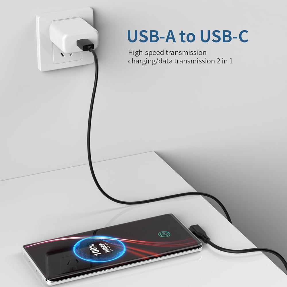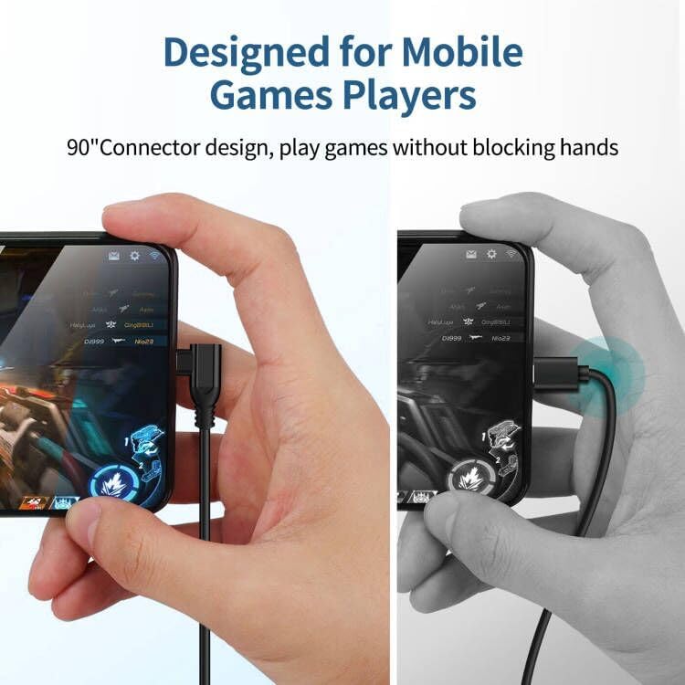 تصميم زاوية يمين متطور: بالمقارنة مع كابلات الشحن التقليدية، يتميز كابل USB A إلى USB C بتصميم مريح بزاوية يمين 90 درجة على شكل "L" والذي قد يمنع التآكل النموذجي وإجهاد الكابل ومشكلات الاتصال ويزيد من عمر كابل الشحن. يجعل تصميمه المريح ممارسة الألعاب واستخدام التطبيقات في الوضع الرأسي ومشاهدة مقاطع الفيديو وقراءة الكتب الإلكترونية أثناء الشحن أسهل وأكثر راحة. الى جانب ذلك، يمكن استخدامه في أي زاوية ضيقة.