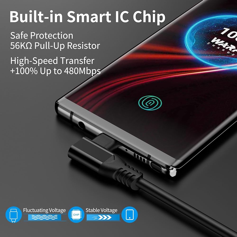 تصميم خاص لهاتف OnePlus/Oppo/Realme: يدعم Warp Charge (5V/ 6A)/ Dash Charge (5V/ 4A)/ VOOC Charge. عند استخدام كابل الشحن من النوع c ومحول شحن oneplus الأصلي لشحن OnePlus 8t، فمن الممكن شحن ما يصل إلى 50% من السعة تقريبًا. 30 دقيقة. يمكن إجراء التحميل ونقل البيانات (حتى 480 ميجابت/ثانية) في نفس الوقت. ملحوظة: الأجهزة من العلامات التجارية الأخرى تدعم فقط الشحن العادي: 5V 2A.