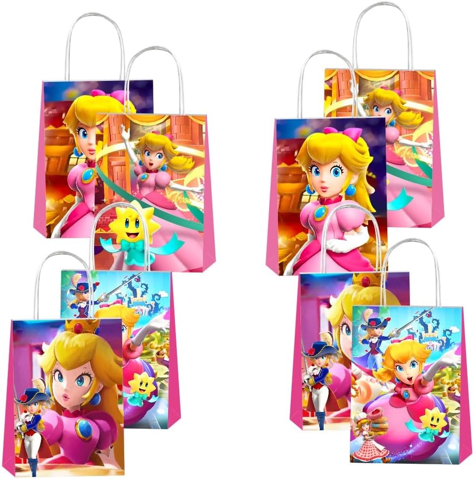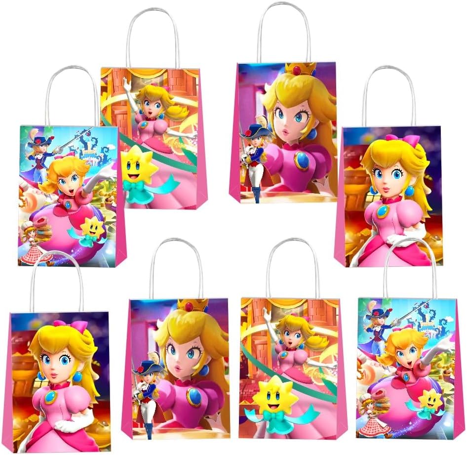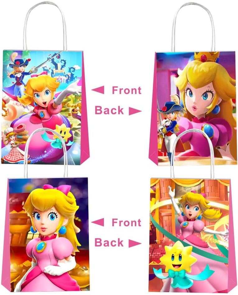 12pcs Princess Peach Party Favor Gift Bags with Handles, Princess Peach Birthday Party Supplies for Princess Peach Party Decorations