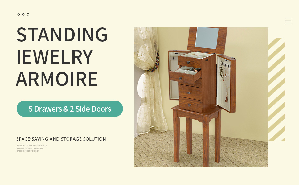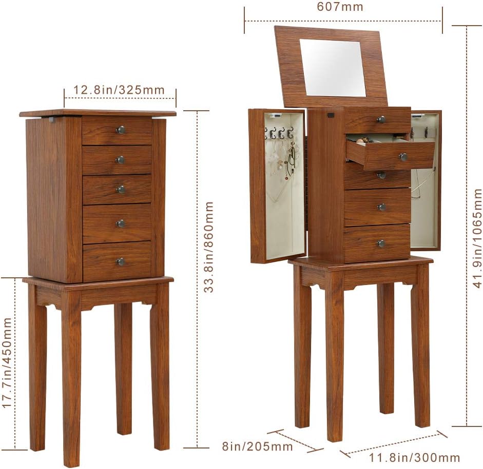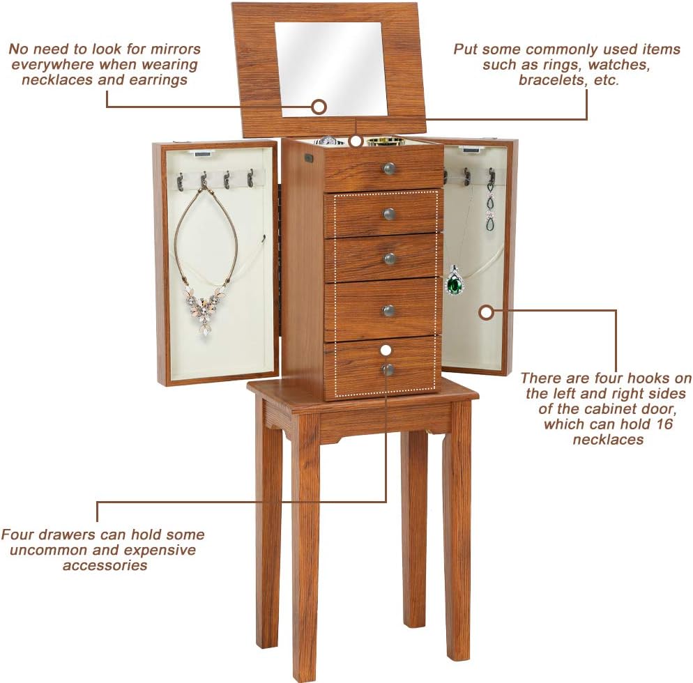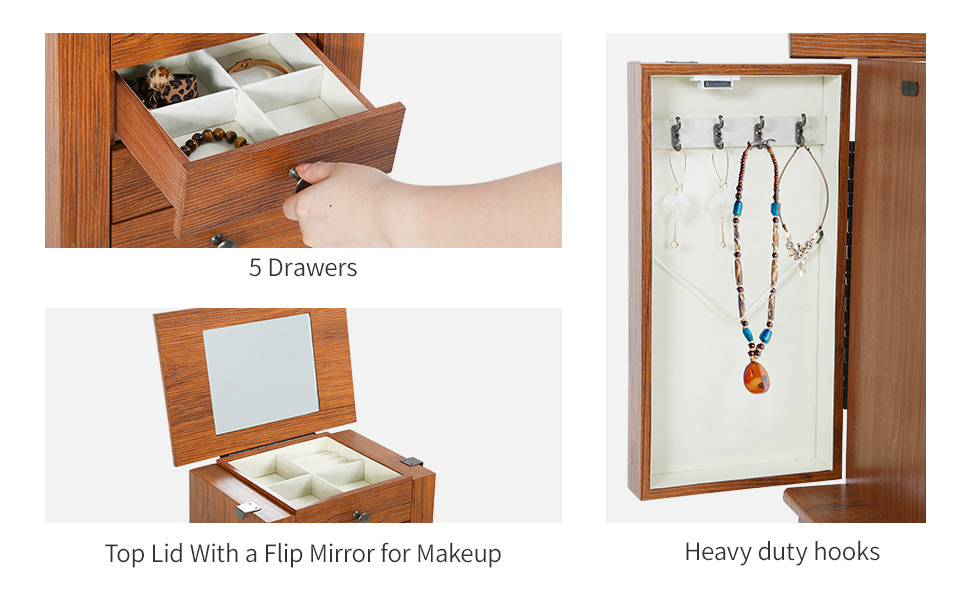 5 Layers Of Drawers, More Storage Space:There are five drawers in the jewelry cabinet. The first and second drawers can store small decorations such as earrings and rings. From the third floor to the bottom floor, you can put some larger jewelry , Such as bracelets, hairpins, etc.