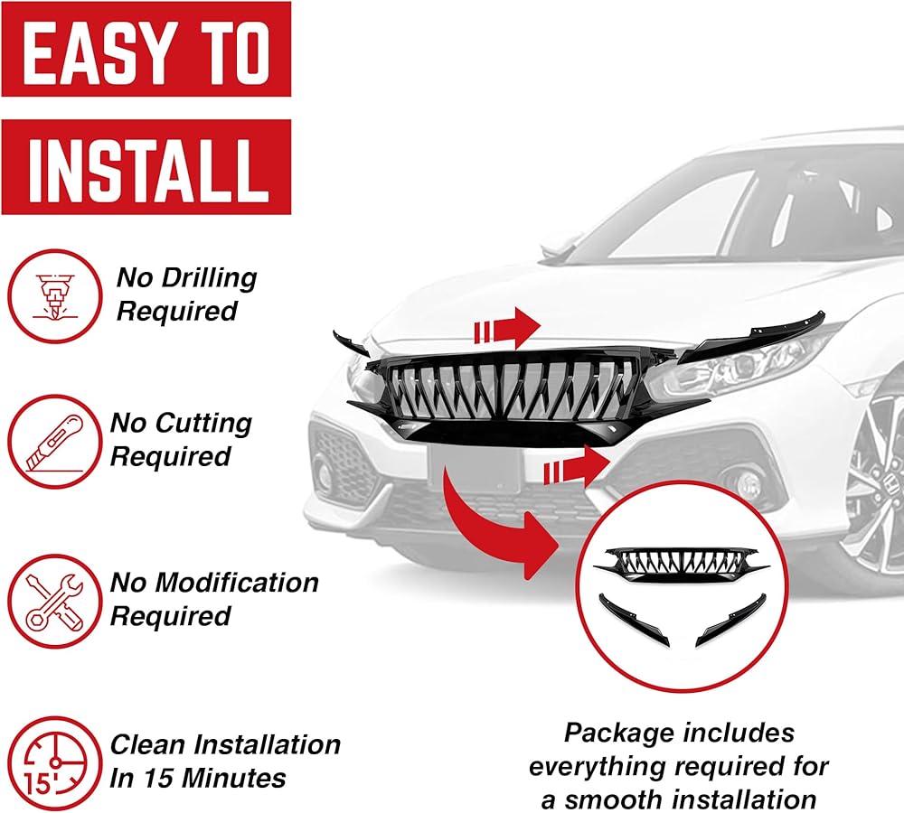 • يناسب الموديلات: متوافق مع موديلات 2016 و2017 و2018 Honda Civic Non-Si 4 أبواب سيدان وNon-Si 2 باب كوبيه (لن يناسب 2019-Up Non-Si Sedan أو Coupe)، 2016، 2017، 2018، 2019 و2020 و2021 Honda Civic Si (جميع الموديلات)، 2016، 2017، 2018، 2019، 2020، و2021 Honda Civic 5 Door Hatchback (لم يتم تضمين شعار جميع الموديلات. يمكنك فقط استخدام غسالة أكبر لقفل الشعار إذا كنت تريد استخدام الشعار)