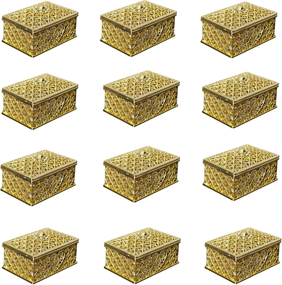 HAN SHENG 12 قطعة من صناديق الحلوى المستطيلة المجوفة لحفلات الزفاف وصناديق تخزين الحلوى وصناديق الهدايا وصناديق الديكور لحفلات الزفاف وأعياد الميلاد وحفلات أعياد الميلاد (ذهبي)