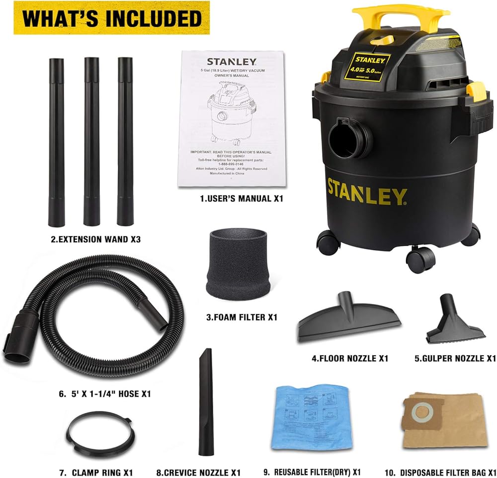 • ❤【ما تحصل عليه: 1 × مكنسة كهربائية رطبة/جافة، 1 × 1-7/8 بوصة × 6 بوصات خرطوم مرن، 2 × عصا تمديد، 1 × فوهة شقوق، 1 × فوهة أرضية، 1 × فوهة جولبر، 1 × رغوة. فلتر، 1 × كيس غبار يمكن التخلص منه، 1 × فلتر خرطوشة، عمر محدود لمدة عام واحد