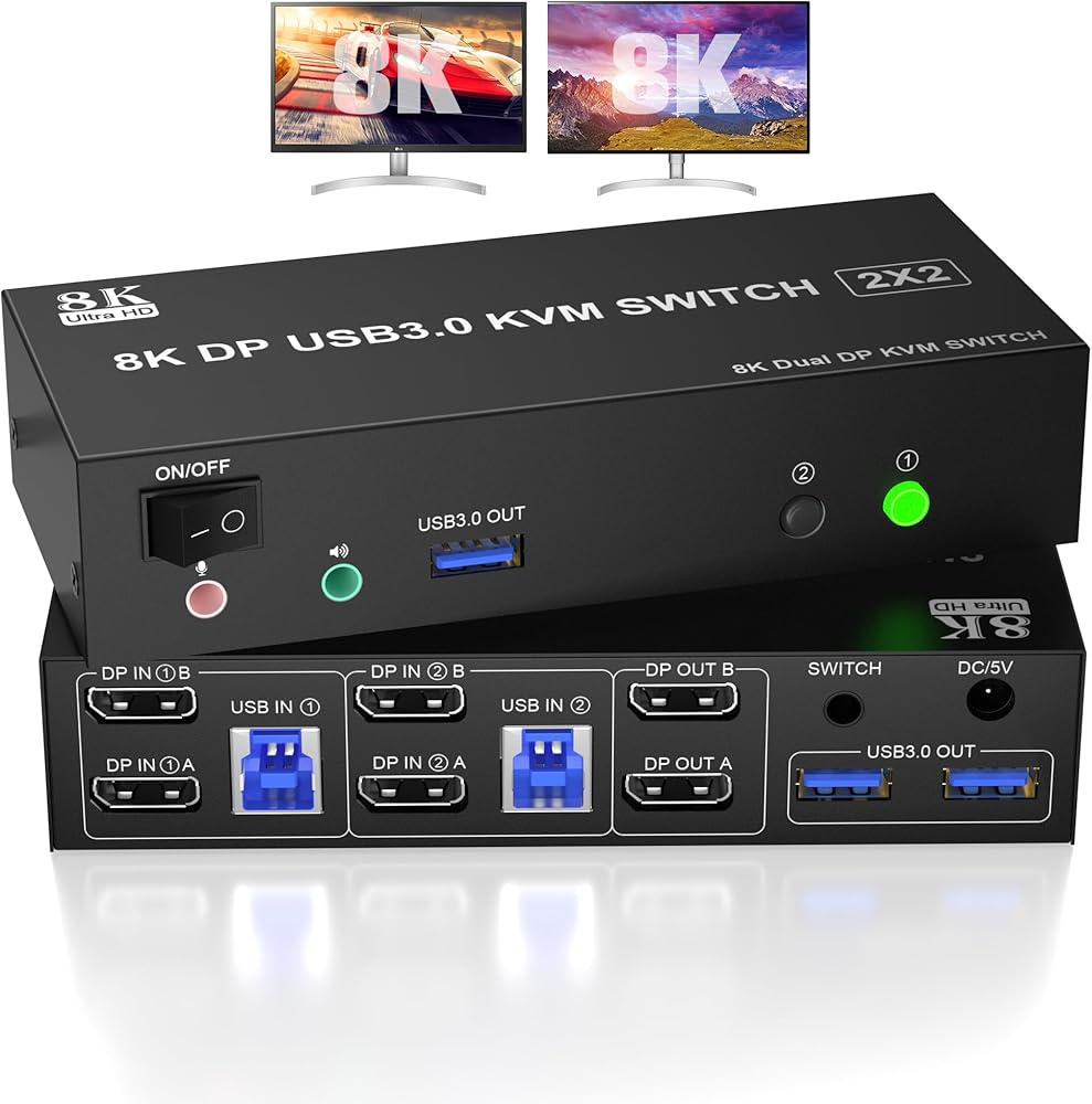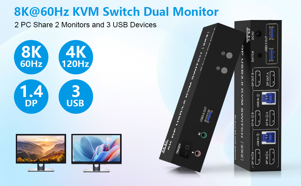 【ملاحظة: يحتاج كل جهاز كمبيوتر إلى توصيل كابل 2*DP+1*USB 3.0 لعرض الشاشات المزدوجة بشكل صحيح. بالنسبة لسطح المكتب أو الكمبيوتر المحمول بدون منفذ DP 2*، تحتاج إلى استخدامه مع محول موثوق أو قاعدة شحن USB C. يرجى التأكد من أن كل جهاز كمبيوتر لديك يمكنه دعم الشاشة المزدوجة قبل الشراء. طريقة الاختبار: يمكنك توصيل جهاز الكمبيوتر الخاص بك مباشرة بشاشتين (وليس عبر KVM).