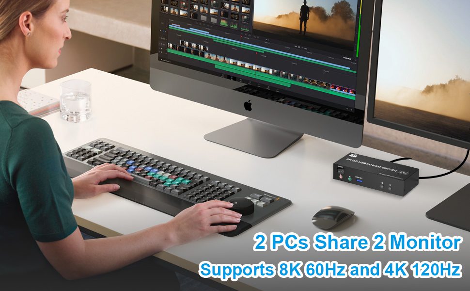 【فائقة الدقة 8K عند 60 هرتز/4K عند 144 هرتز】يدعم محول DP 1.4 KVM دقة 8K عند 60 هرتز/4K عند 144 هرتز، ومتوافق مع الإصدارات السابقة مع 4K عند 60 هرتز 3D 1080P 720P وما إلى ذلك. إذا كان جهاز الكمبيوتر والشاشة وكابلات dp يدعمان 8K، إذن يمكن لمفتاح KVM تحقيق أفضل تأثير بصري دون التأثير على أداء جهاز الكمبيوتر والشاشة.