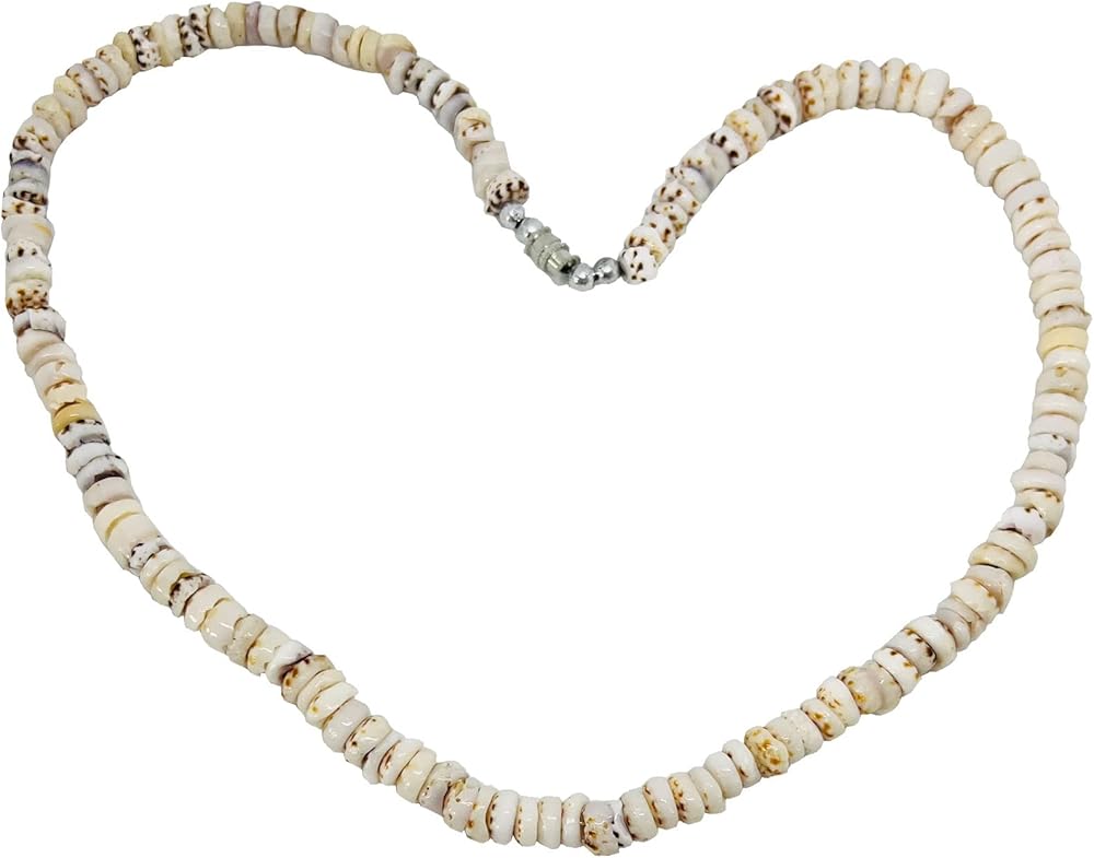 Hawaiian Jewelry Handmade Tiger Puka Shell Choker Necklaces from Maui, Hawaii. Each tiger puka shell is unique in color so may not appear exactly as pictured. Shell width about: 6mm-8mm Length: about 18 inches Sturdy Twist-Barrel Lock Natural Hawaiian tiger puka shells - not ground or polished Handmade on the island of Maui with shells I collected on the island of Kauai.