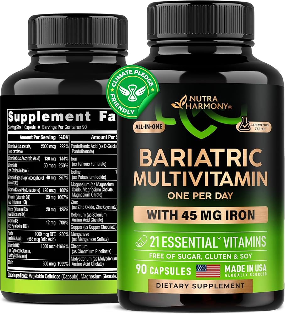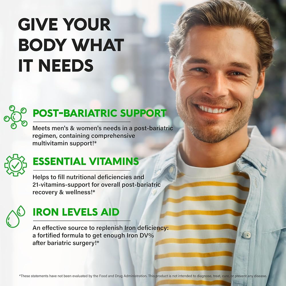 💚 مع 45 ملغ من الحديد - مصدر رائع وفعال لتعويض نقص الحديد: تركيبة مدعمة بالحديد لعلاج البدانة مع الحديد للحصول على نسبة كافية من الحديد DV بعد جراحة السمنة. تركيبة معززة من مجازة النقاوة والفيتامينات المتعددة تدعم مستويات الهيموجلوبين وتساعد على الحصول على ما يكفي من الحديد يوميًا بعد جراحة السمنة.