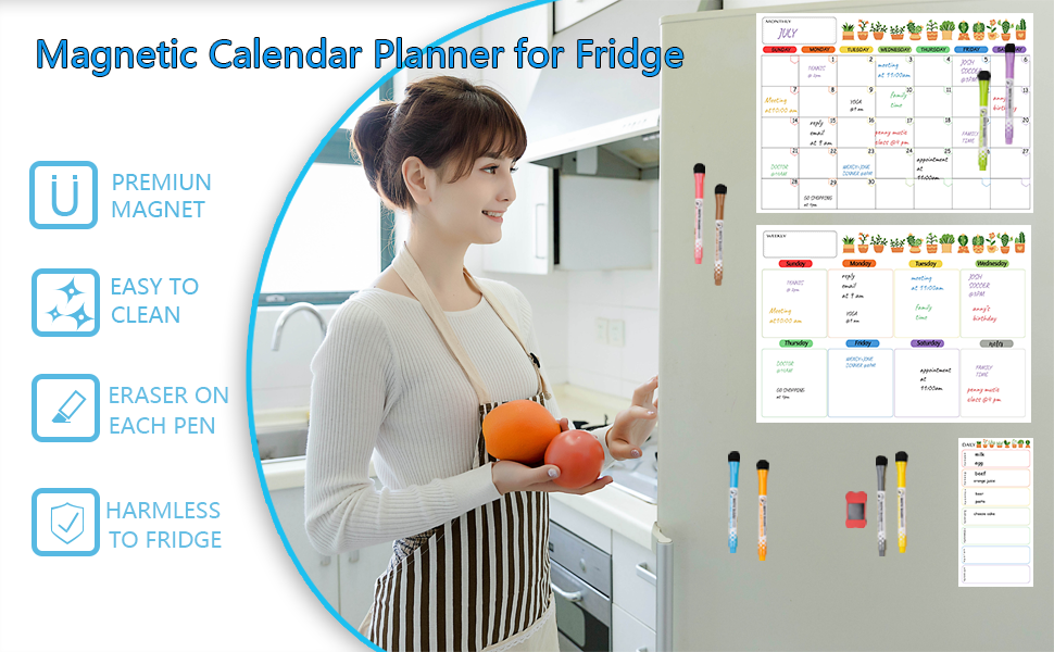 【مغناطيس سميك مانع للانزلاق】لوحة الثلاجة المغناطيسية أكثر متانة ومقاومة للتمزق؛ ليس مثل التقويمات الواهية التي تسقط بسهولة، يبقى تقويم الثلاجة هذا ثابتًا على ثلاجتك؛ من مواعيد التقويم إلى قوائم البقالة، احتفظ بكل شيء منظمًا في مكان واحد.