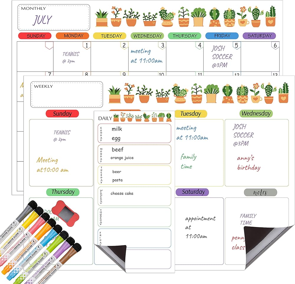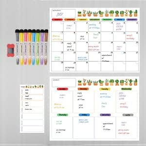 【معبأة بشكل مسطح】يتم تعبئة اللوح الأبيض للثلاجة بشكل مسطح في الصندوق. بالمقارنة مع التعبئة الملفوفة في الأنبوب، فإن التعبئة المسطحة ستحافظ على التقويم في حالة ممتازة، وتمنع من الانحناء أو التلف. تتضمن الحزمة: 1 مخطط أسبوعي مغناطيسي، 1 تقويم شهري (16.5 بوصة عرض × 11.8 بوصة ارتفاع) و1 قائمة تسوق (6 بوصة عرض × 8 بوصة ارتفاع)، 8 أقلام، 1 ممحاة.
