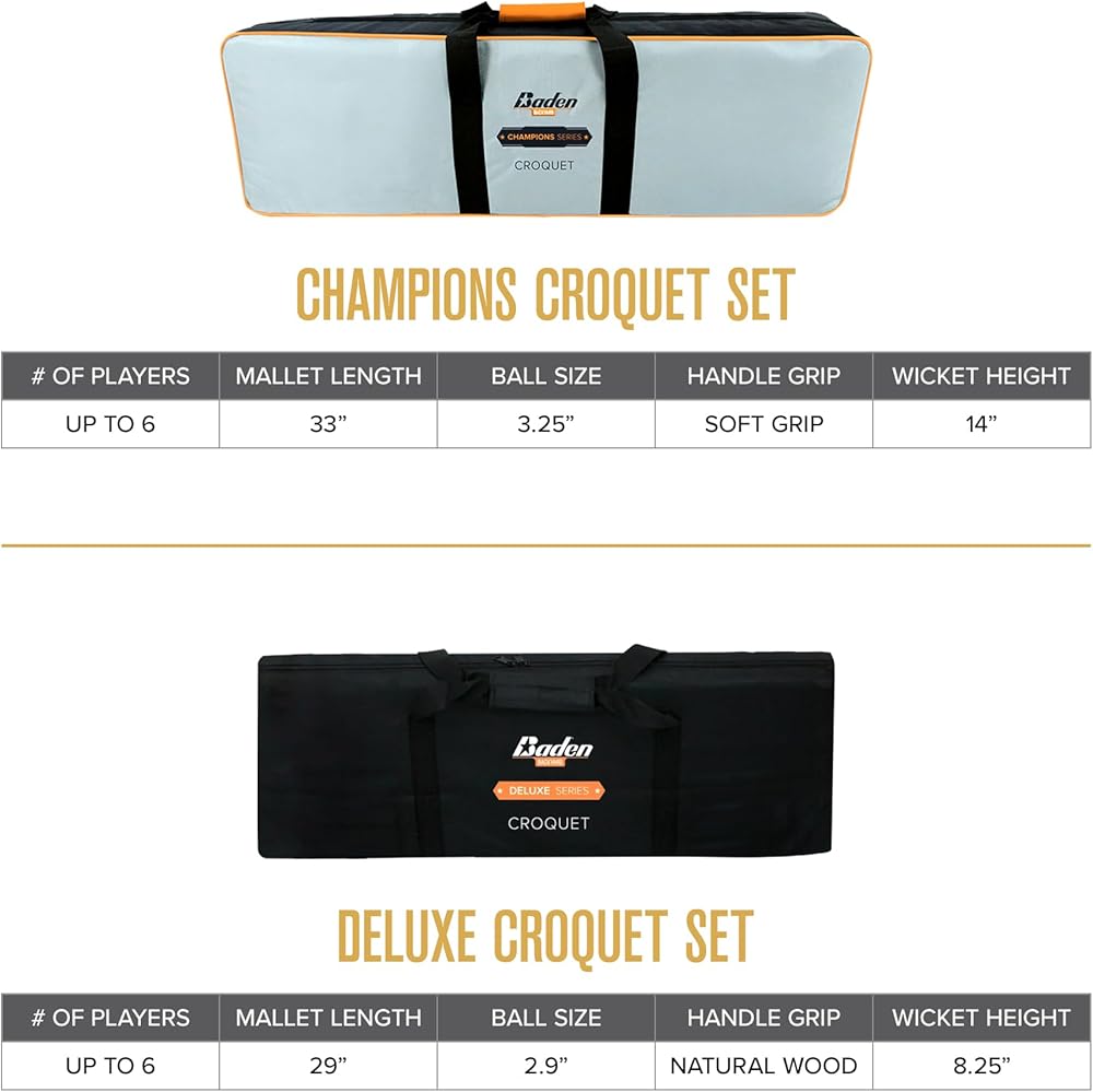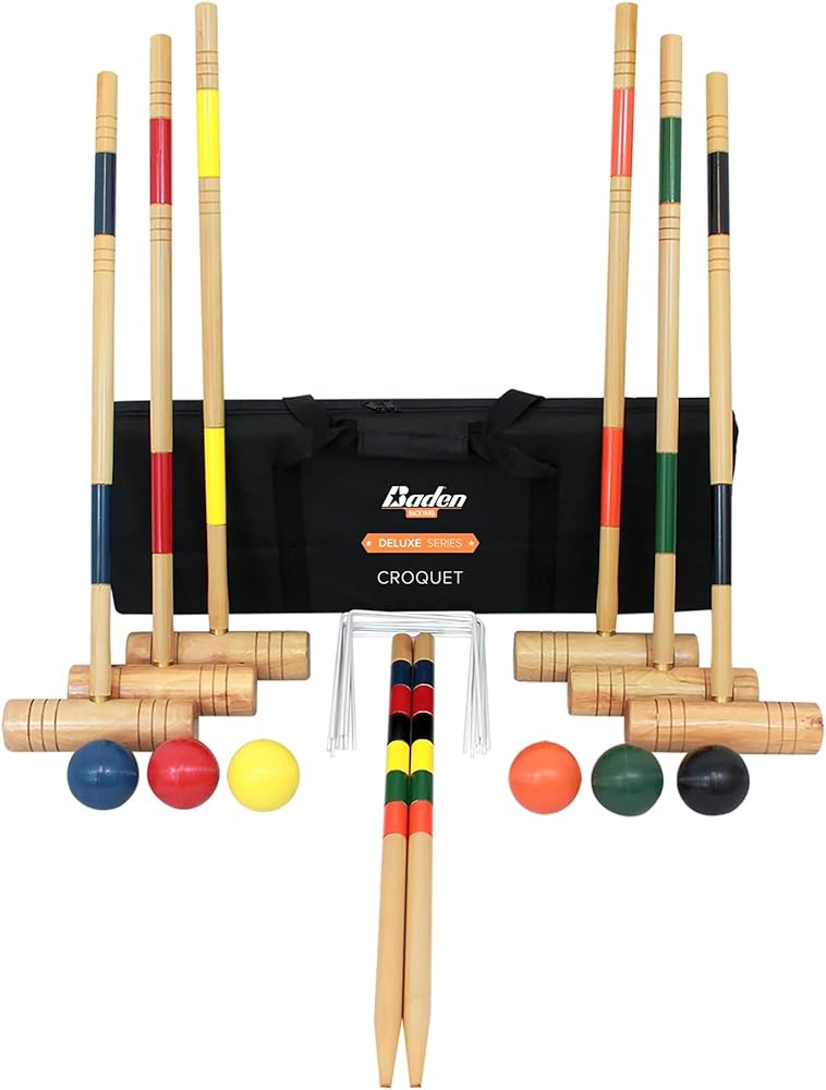 Tap into some summer fun any time of the year with Baden's classic backyard game, croquet. Baden's Deluxe Series Croquet Set is portable and perfect for leisurely afternoons at the park or in comfort of your own backyard with friends and family. The Deluxe Croquet Set comes complete with everything needed to quickly set up a match whenever you feel the urge to play. This sets detachable croquet mallet heads make it easy to fit everything included with this set conveniently back into its portable carry case. Enjoy this classic lawn game at any family picnics, camps, and social events.