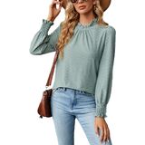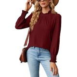تصميم أنيق - قمصان خريفية نسائية بأشرطة تبرز الشباب، ورقبة وهمية مكشكشة وتصميم بأكمام طويلة يظهر أناقتك ويجعل ذراعيك مريحتين، كما يساعدك المقاس الفضفاض على تحقيق الجسم المثالي.