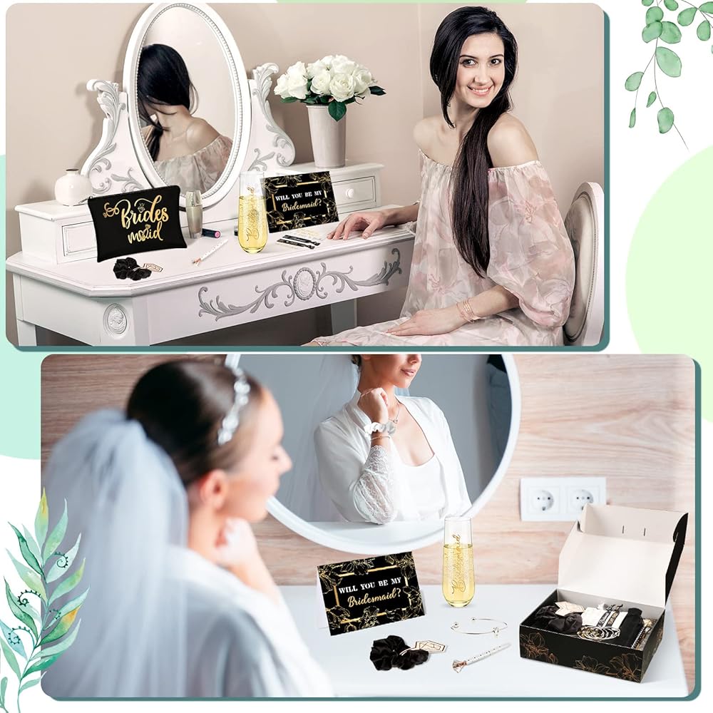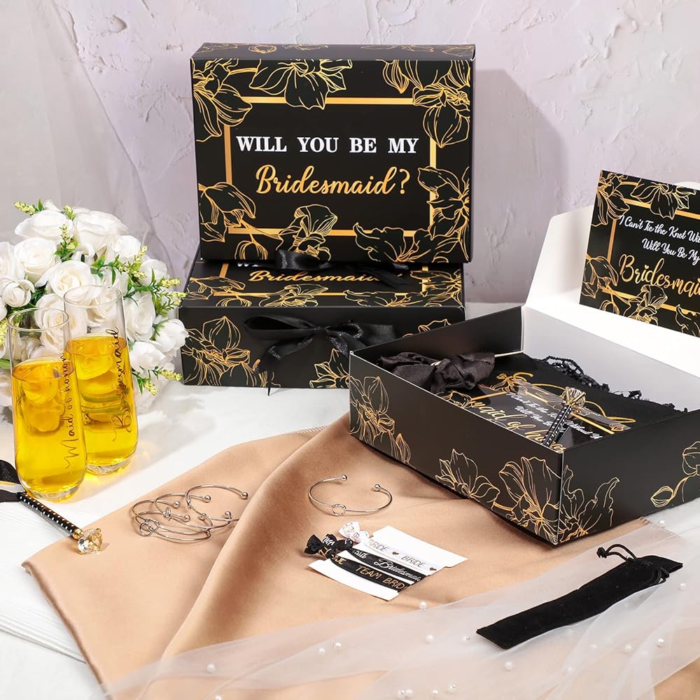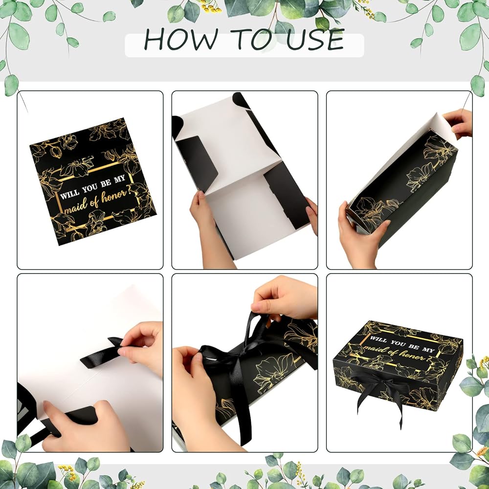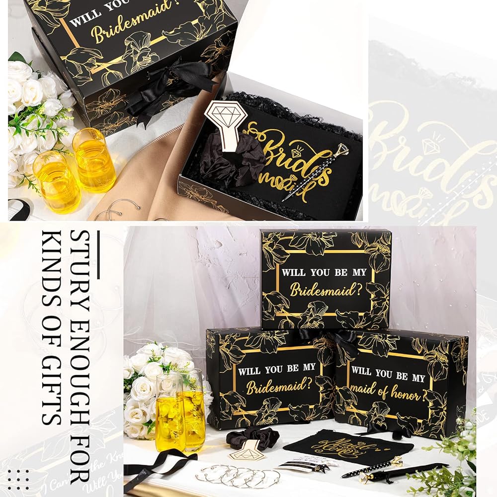 The bridesmaid proposal boxes are made of quality cardboard, flat and pre folded, flat packed, easy to fold and assemble, just a few steps to assemble your little bridesmaid gift box to secure your precious gifts for your best friends, saving your party and wedding planning time.