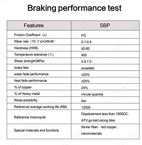 Superior Performance. This brake pads of SBP series, which is less metallic and asbestos free, features heat resistance, stable friction coefficient, strong braking force, soft material, low wear rate and long service life, ensuring consistent braking performance under all possible riding conditions