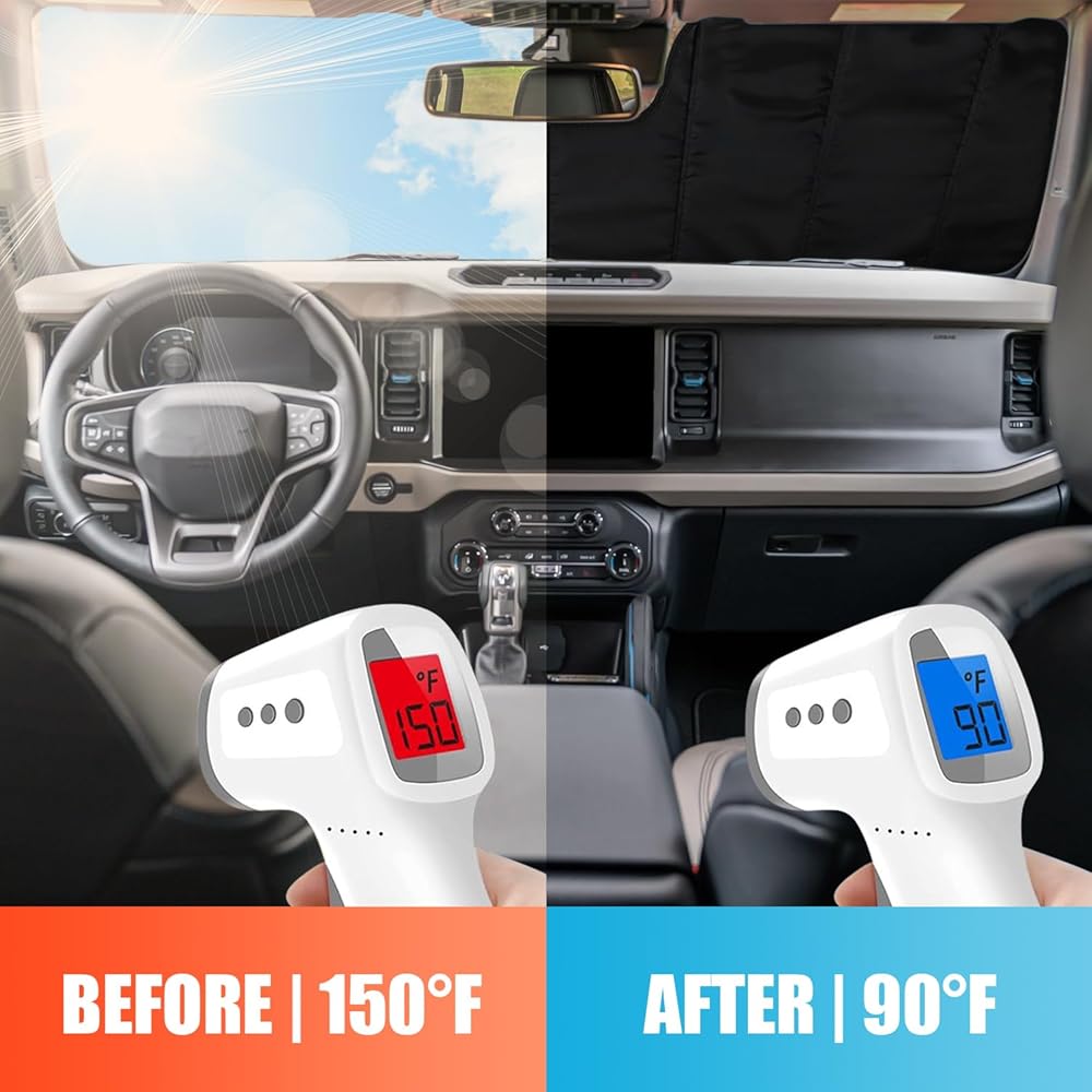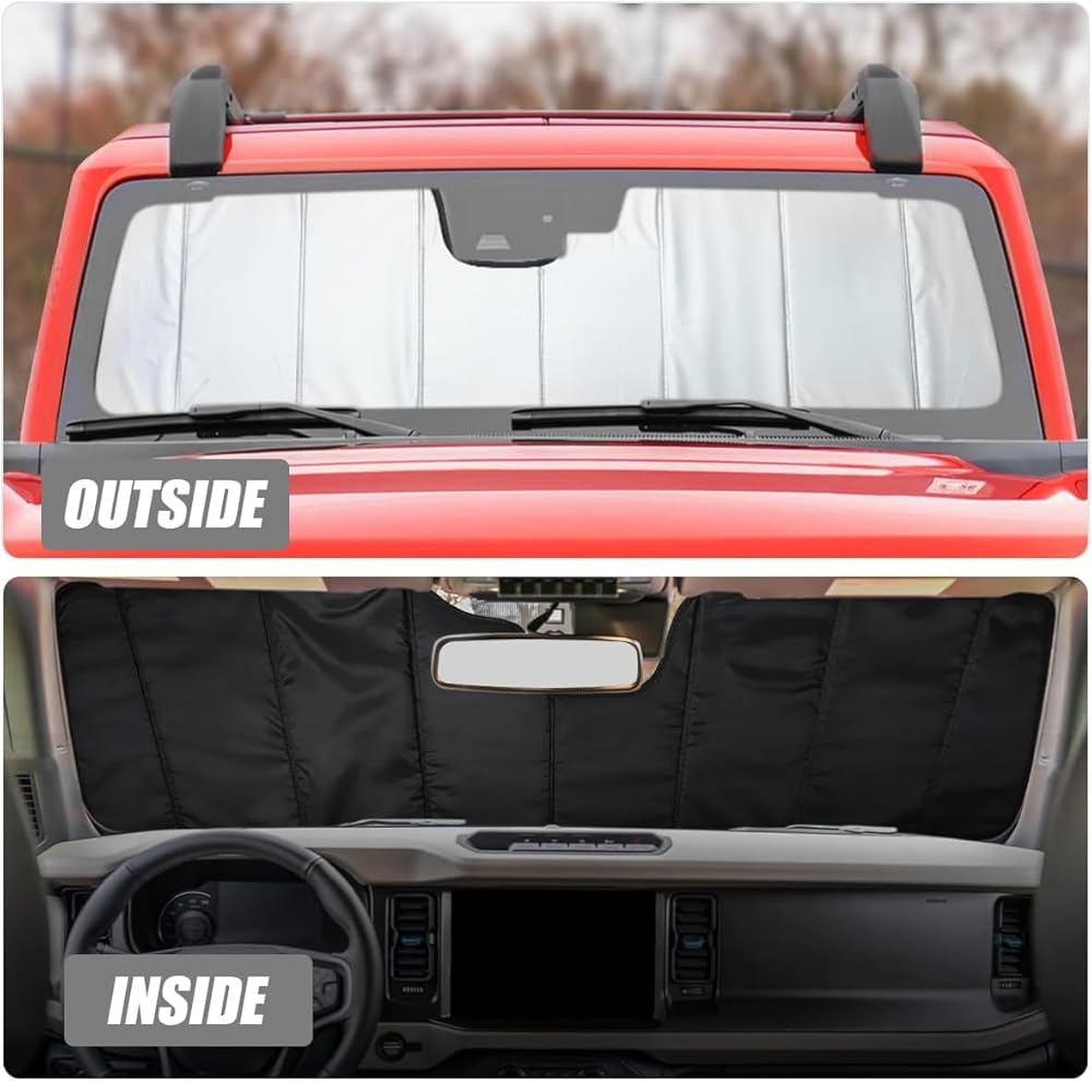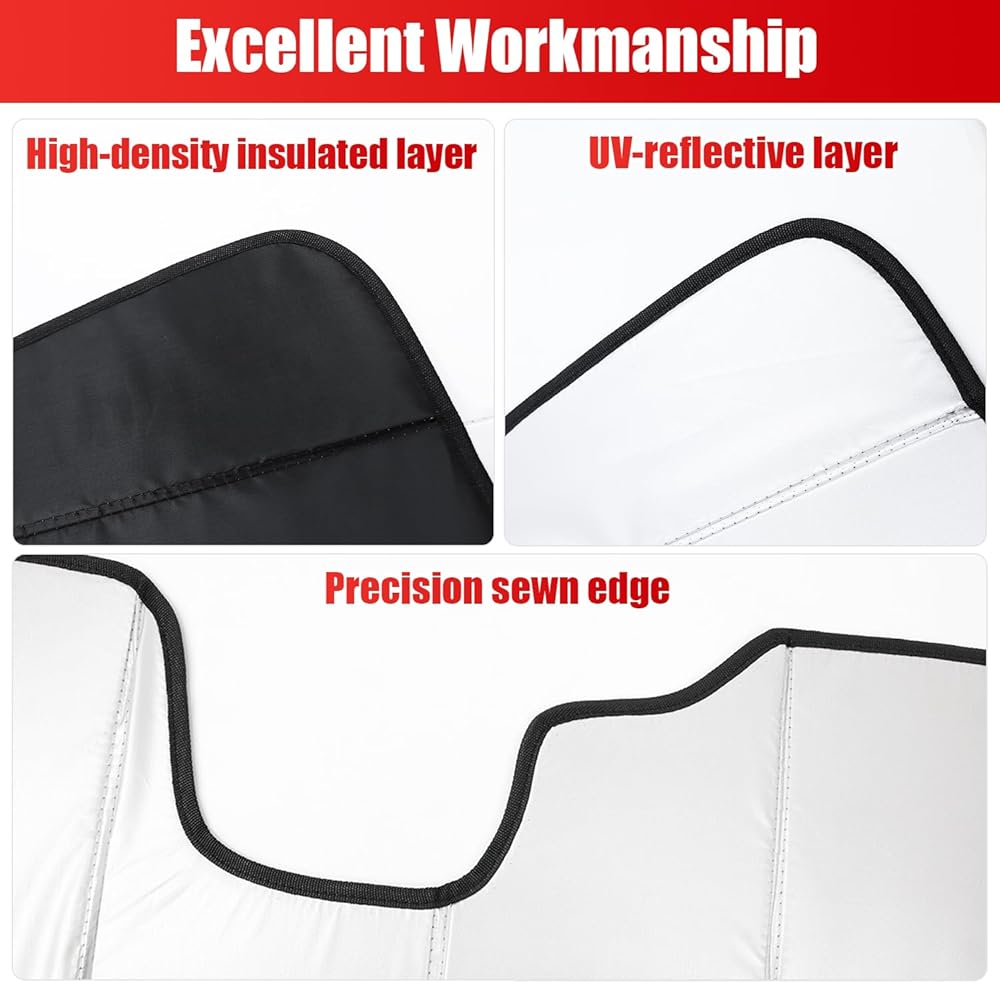 【الوظيفة】تحمي مظلة نافذة السيارة الجزء الداخلي لسيارتك ولوحة القيادة والمقاعد والأجهزة الإلكترونية من أضرار الأشعة فوق البنفسجية الضارة، وتمنع البهتان والتشقق وانبعاث الروائح الكريهة الناجمة عن التعرض لفترات طويلة لأشعة الشمس الضارة.