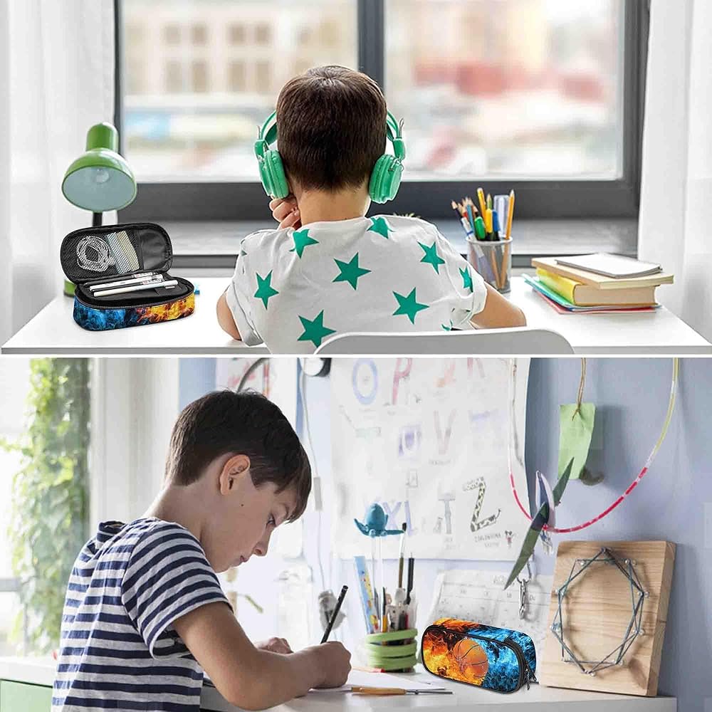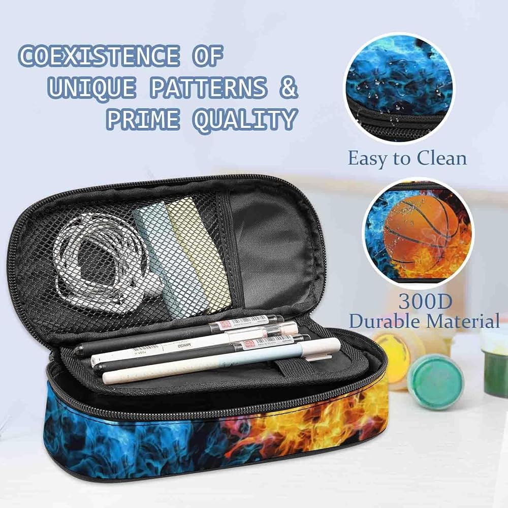 ✏حقيبة أقلام تجميلية ذات سعة كبيرة: الأبعاد: 8.7 بوصة × 4.3 بوصة × 2.3 بوصة. تحتوي حقيبة الأقلام الواسعة هذه على مقصورتين لتخزين واسع للأدوات المكتبية أو الملحقات التقنية. يشتمل تصميمه على جيوب شبكية، مما يوفر مساحة واسعة لتنظيم العناصر والإكسسوارات الأصغر حجمًا.