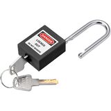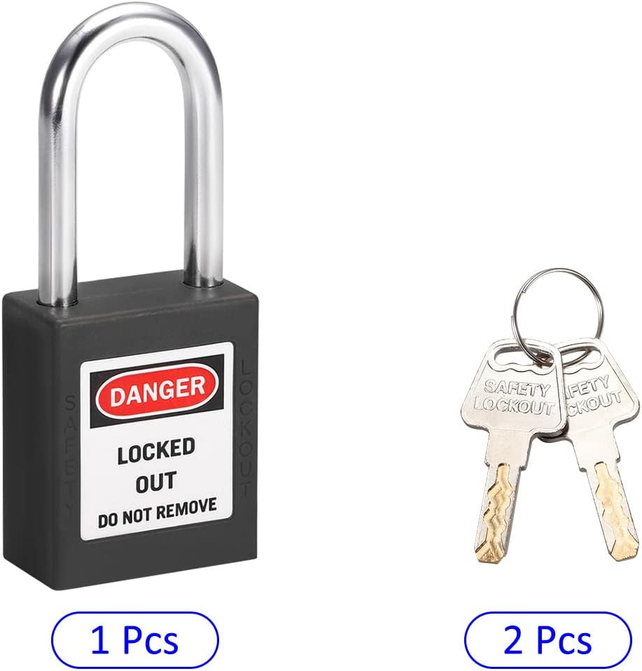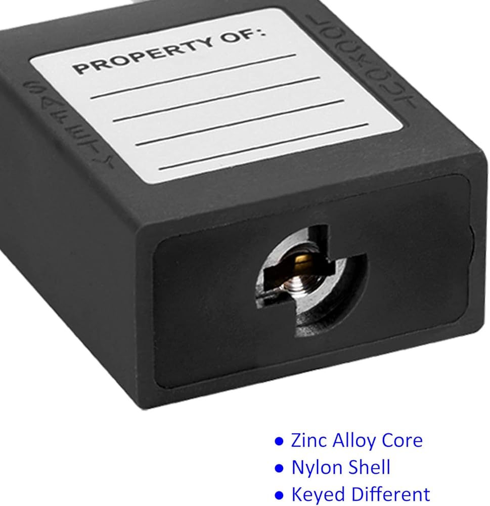 Steel shackle, solid zinc alloy core, nylon shell. Lightweight and non-conductive. Corrosion resistance and high-temperature resistance. Unique key for a specific lock, only 1 padlock can be opened per set of keys. Brass keys are durable and rust-resistant. The key retaining feature ensures the padlock is not left unlocked.