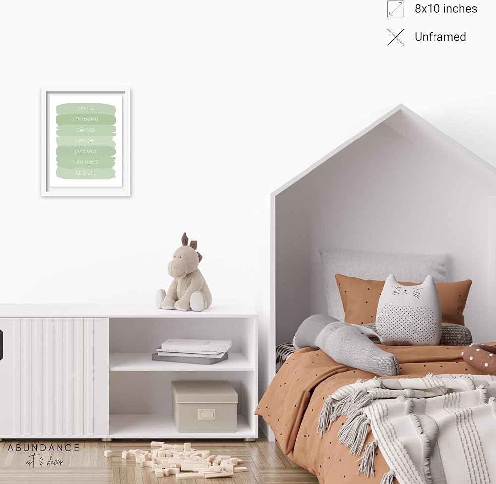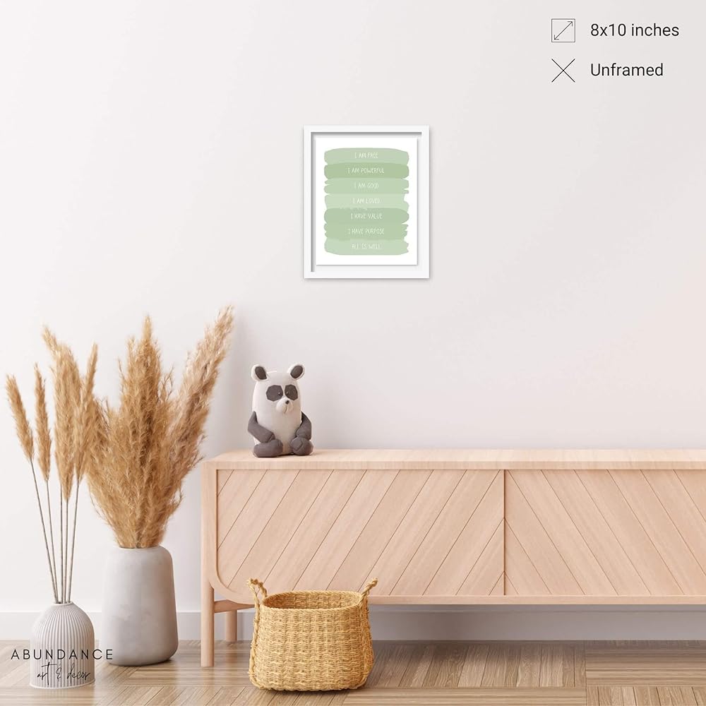 • SO MANY STYLES - Sage nursery wall decor, toddler room décor, wall decor for girls bedroom, inspirational wall art for kids, daily affirmations for kids, positive affirmations poster, self love affirmations, little girl bedroom decor, baby girl wall decor, zen wall art, sage bathroom décor.