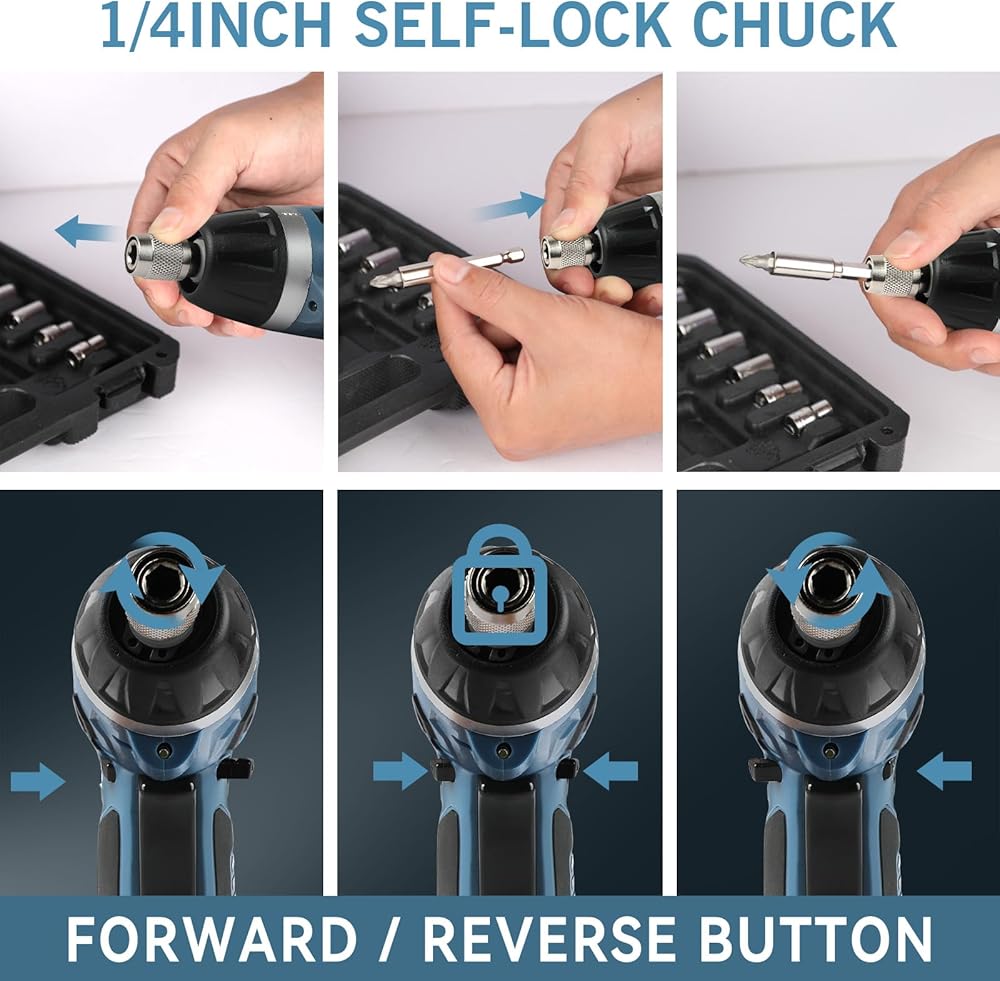 عزم دوران قابل للتعديل: يحتوي مفك البراغي الكهربائي خفيف الوزن على إعدادات عزم دوران 6+1، وظرف 1/4 بوصة، وعزم دوران أقصى يبلغ 50 بوصة (5.6 نيوتن متر)، وهو مريح للغاية وعملي في الصيانة المنزلية اليومية.