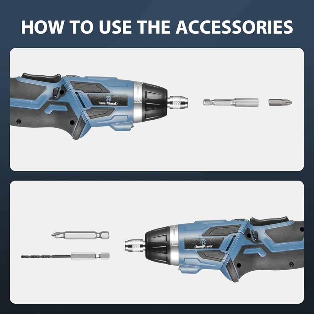 مصابيح LED أمامية وخلفية: سوف يضيء ضوء LED الموجود في الجزء الأمامي من مفك البراغي الكهربائي بشكل متزامن عندما يعمل مفك البراغي، مما يجعل بيئة العمل الخاصة بك أكثر إشراقًا. يمكن استخدام ضوء LED الموجود أسفل مفك البراغي كمصباح يدوي منفصل، فقط اضغط على عدسة LED السفلية ويمكنك الحصول على مصباح يدوي رائع.