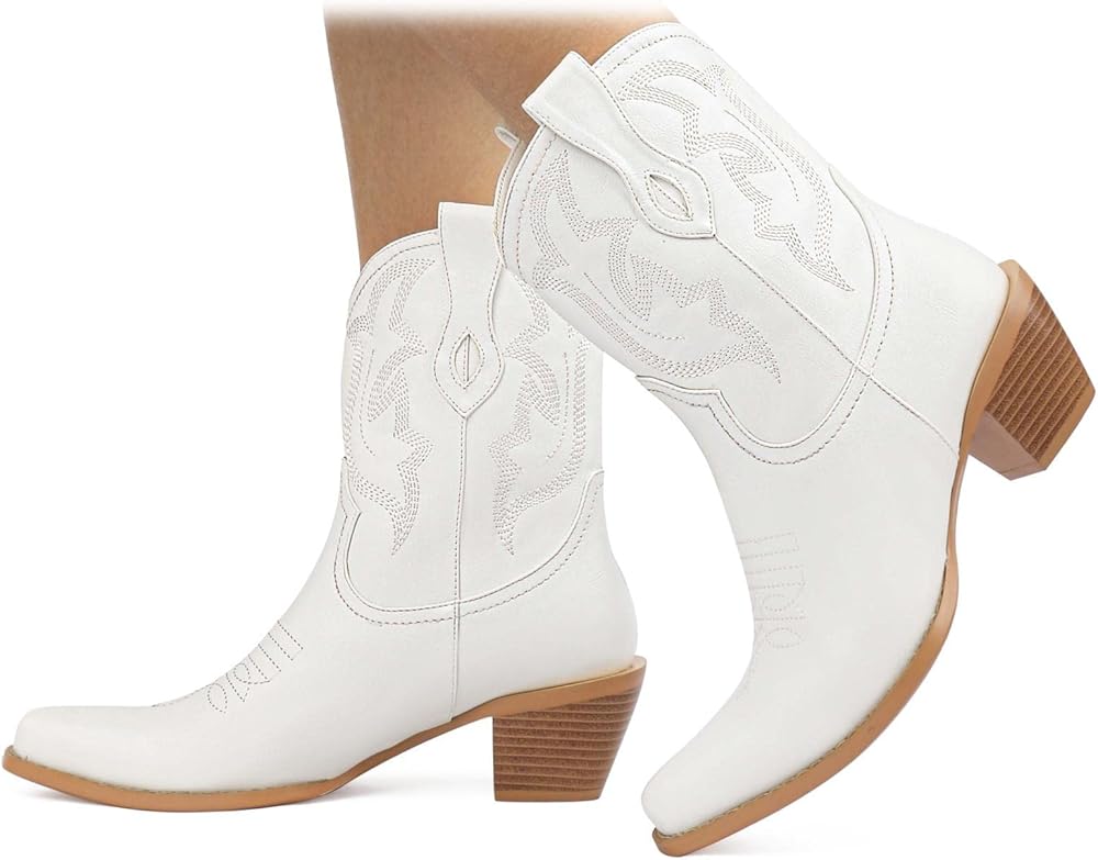 SO SIMPOK النساء راعية البقر أحذية رعاة البقر الرجعية الأحذية الغربية كعب مكتنز سحب على ركوب الجوارب الكاحل قصيرة