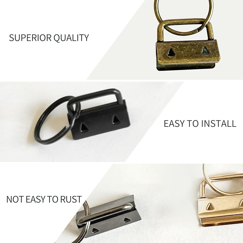 • High Quality: Made of heavy duty metal alloy with a key ring attached on the hoop. With 0.78 inch key ring in width, it's the perfect size for key chain fob wristlet hardware to make key lanyard and webbing wristlet keychains.