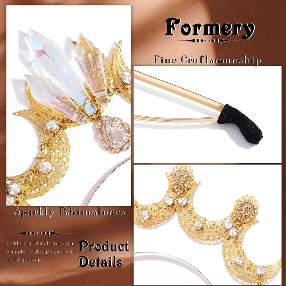 غطاء رأس هالة كريستال منشوري عصري، ومزين بذوق رفيع بقمر لطيف، وكريستال منشوري لامع وأحجار الراين اللامعة، ويمكن أن يكون قادرًا على مطابقة أي زي تريد ارتداؤه، ومناسب لأي مناسبة تريدها، مثل الهالوين، والحفلات التنكرية، والتقاط الصور. والذكرى السنوية والمهرجانات والحفلات.