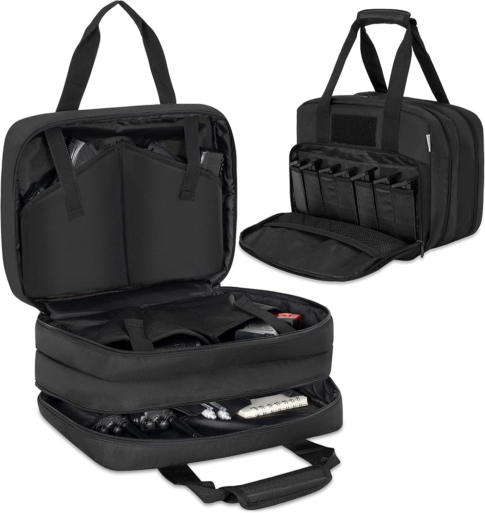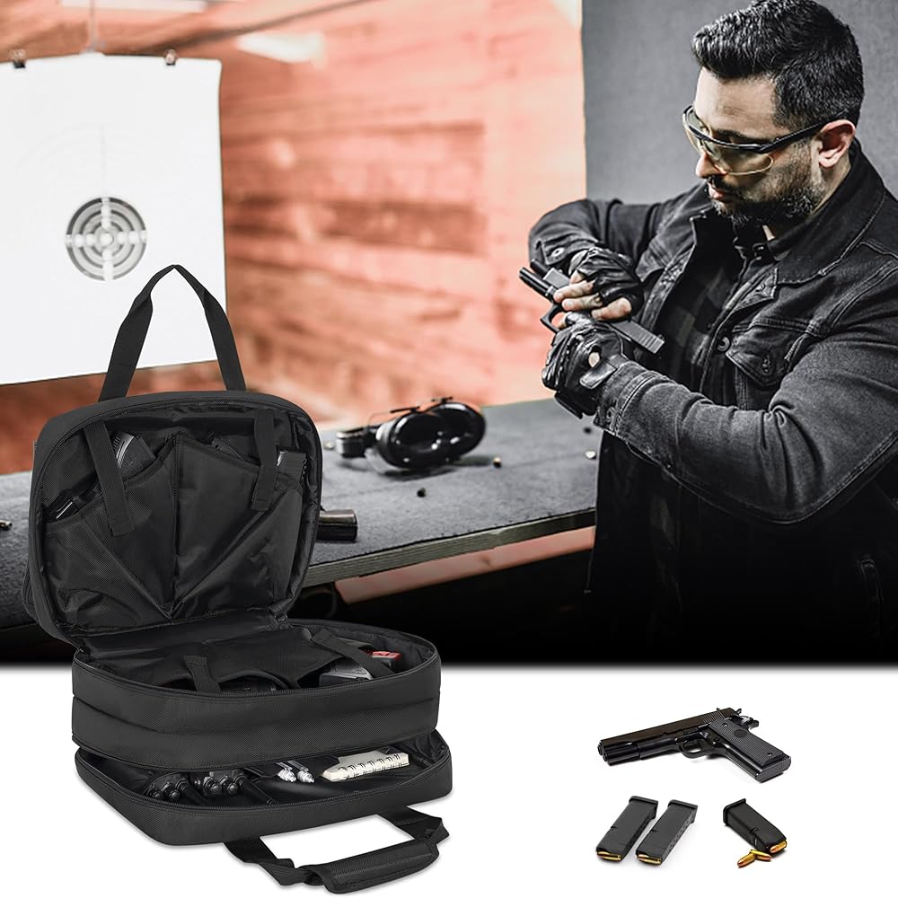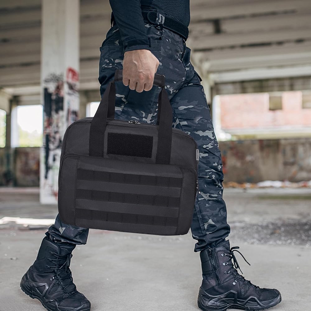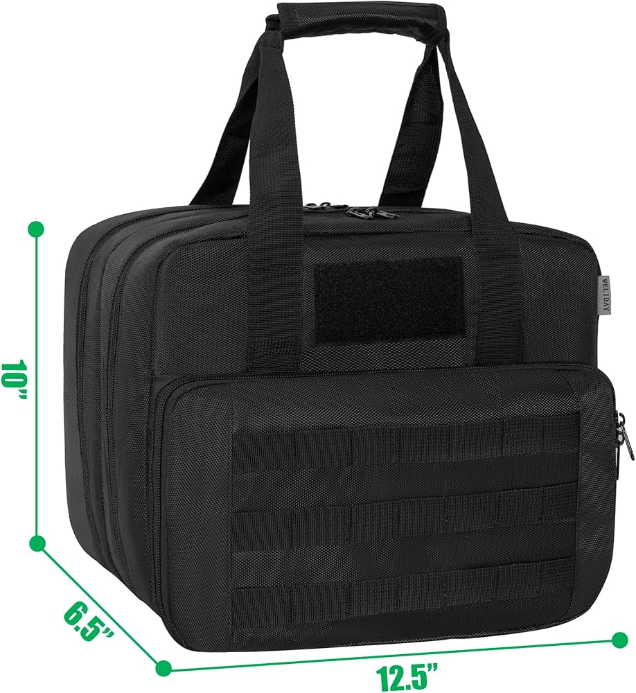 استخدامات متعددة: حقيبة مسدس WELIDAY مصممة للرماية والصيد وآمنة للمسدس. للحفاظ على تنظيم معداتك وحماية ملحقات الأسلحة النارية والمسدسات. تعتبر حقيبة Pistol Range Bag أمرًا ضروريًا لأي متحمس للأسلحة النارية. كما أنها هدية مثالية لعشاق التصوير.