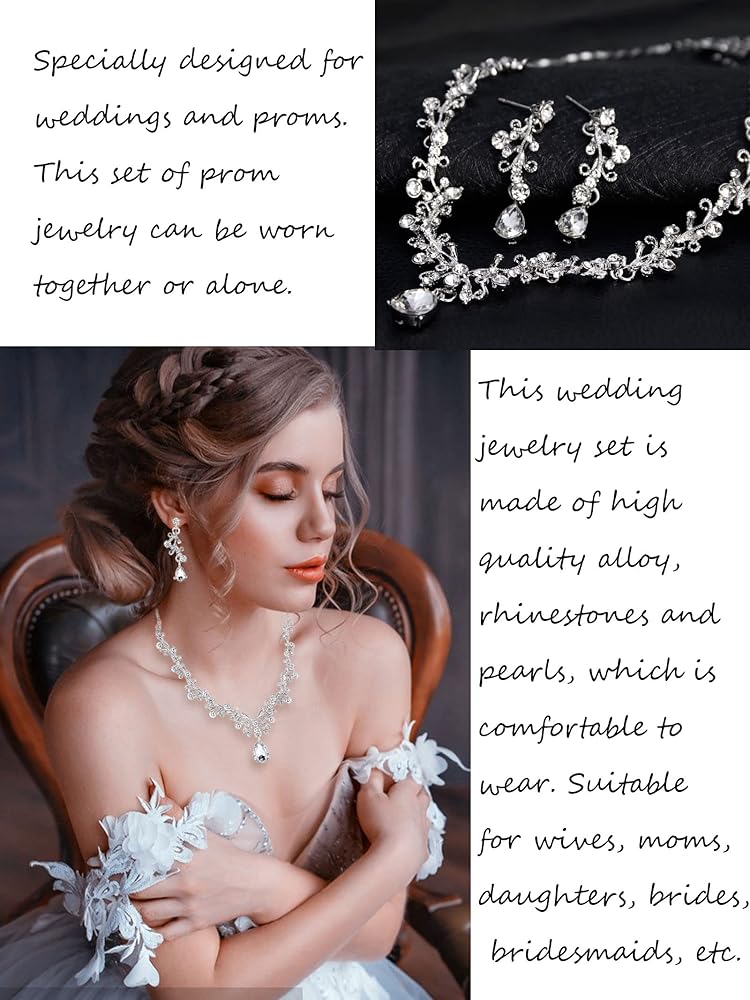 COSTUME PROM JEWELRY FOR WOMEN: Well-made, this wedding jewelry set is suitable for wearing at weddings, engagements, bridal christenings, proms, parties and other formal occasions, making you look more elegant and charming. Suitable for bride, mother of the bride, bridesmaids, etc.