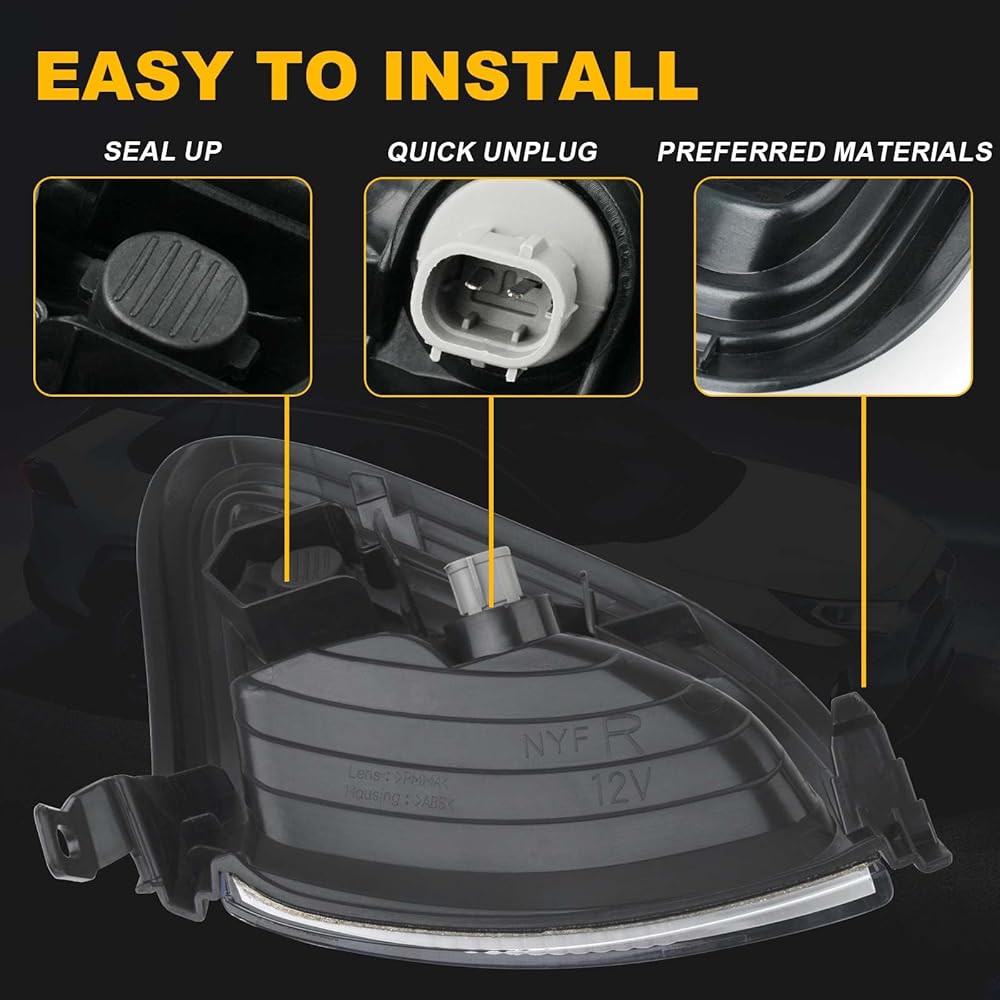 سهولة التركيب: تم تصميم مصابيح الإشارة هذه لسهولة التركيب، دون الحاجة إلى أدوات خاصة أو خبرة. ما عليك سوى إزالة مصابيح الإشارة القديمة واستبدالها بأخرى جديدة للحصول على مظهر جديد وجديد.