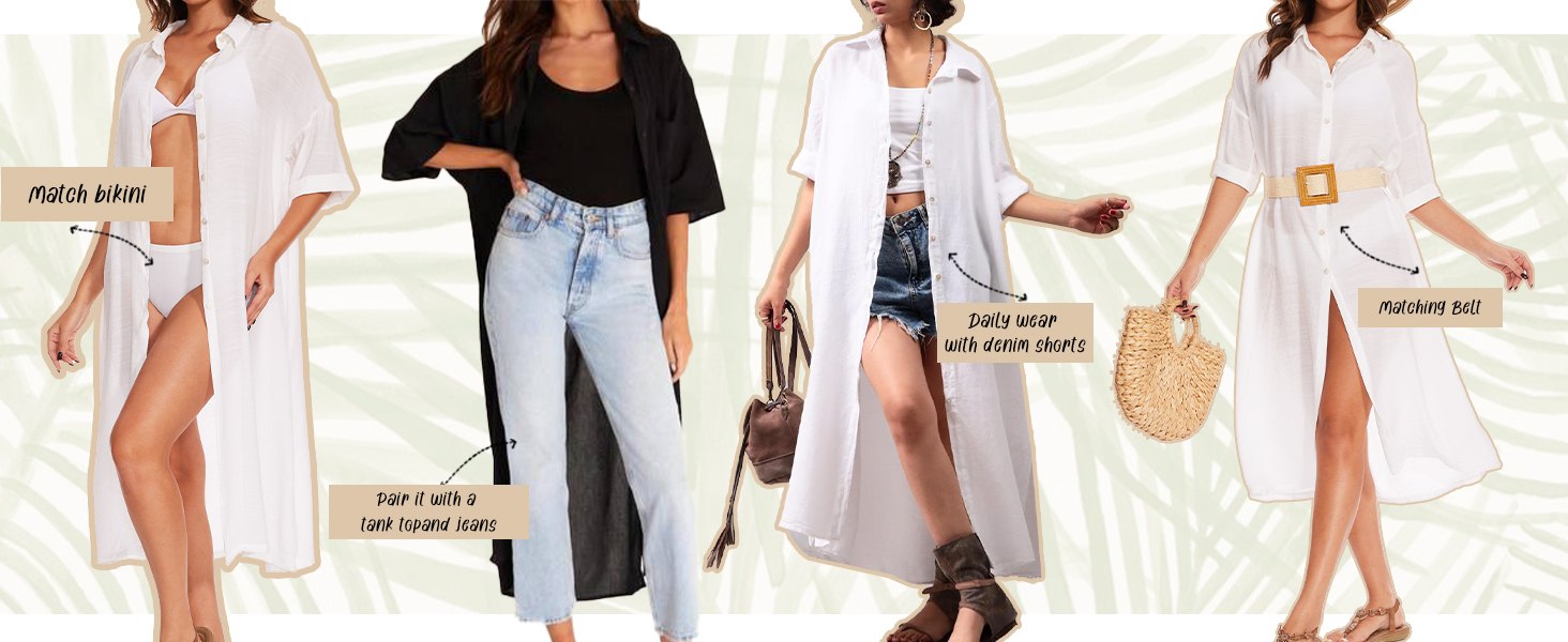 المطابقة: ارتدي الغطاء مع طقم البكيني والمونوكيني وملابس السباحة الأخرى. كما أنه رائع كفستان يومي أو فستان للعطلات (سترة صوفية) مع قميص وسروال قصير.