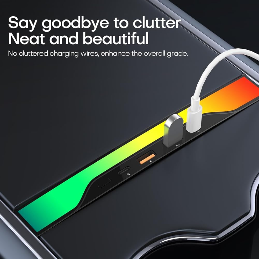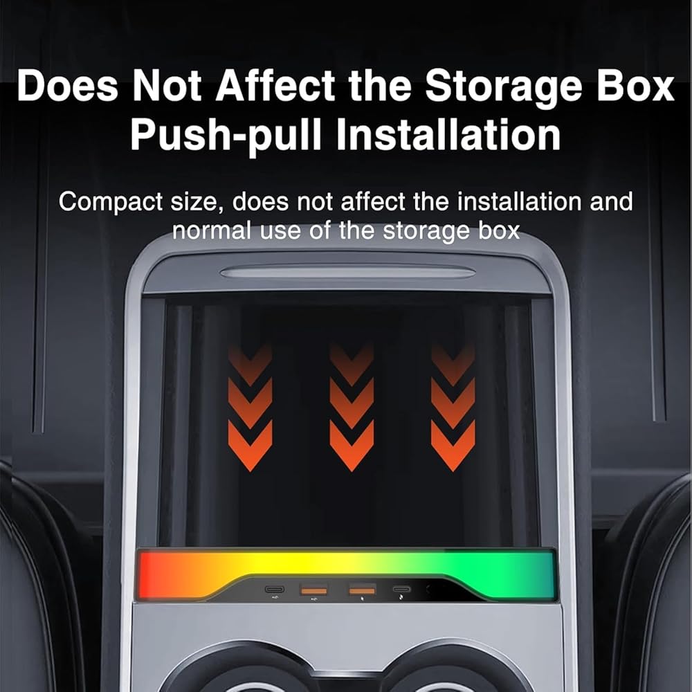 شاحن محور USB لسيارة تسلا موديل Y 2021-2024 موديل 3 2021 2022، مركز وحدة التحكم KOOPAO يدعم سيارة تسلا USB-C شحن سريع متعدد المنافذ، ملحقات محول محطة إرساء الإضاءة المحيطة