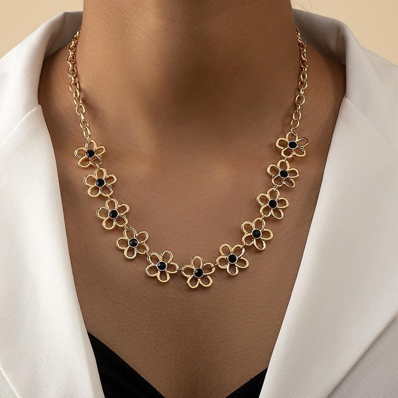 【نمط عصري】هذه القلادات، باستخدام منحنى هندسي مع تصميم زهرة مجوفة، تبرز خطوط رقبتك، يمكنك مطابقة أنماط الملابس المختلفة، والحصول على الثناء طوال اليوم